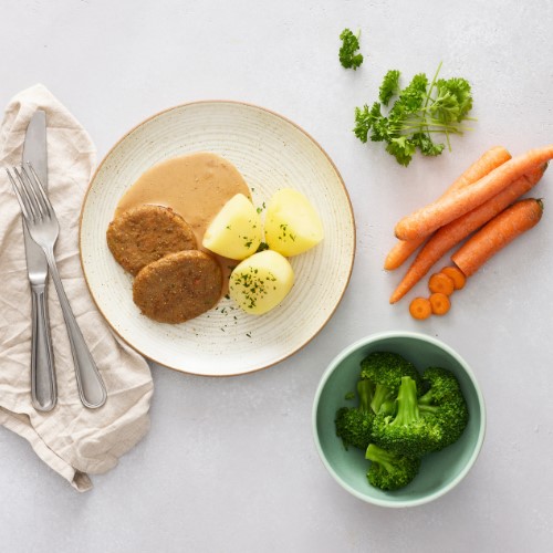 Fridas nötfärsbiff med grönsaker är en smakrik biff som kombinerar svenskt nötkött med morot och broccoli. Den noggrant avvägda blandningen ger en biff med härlig textur och rik smak som gör sig lika bra på klassiska menyer som i moderna rätter. Servera den som en del av en rustik middag med potatisgratäng och gräddsås, eller låt den bli huvudrollen i en fräsch lunchrätt med quinoa och en krispig sallad. Fridas nötfärsbiff passar alla måltidssammanhang där god smak och variation står i fokus – en biff som uppskattas av både stora och små matgäster.