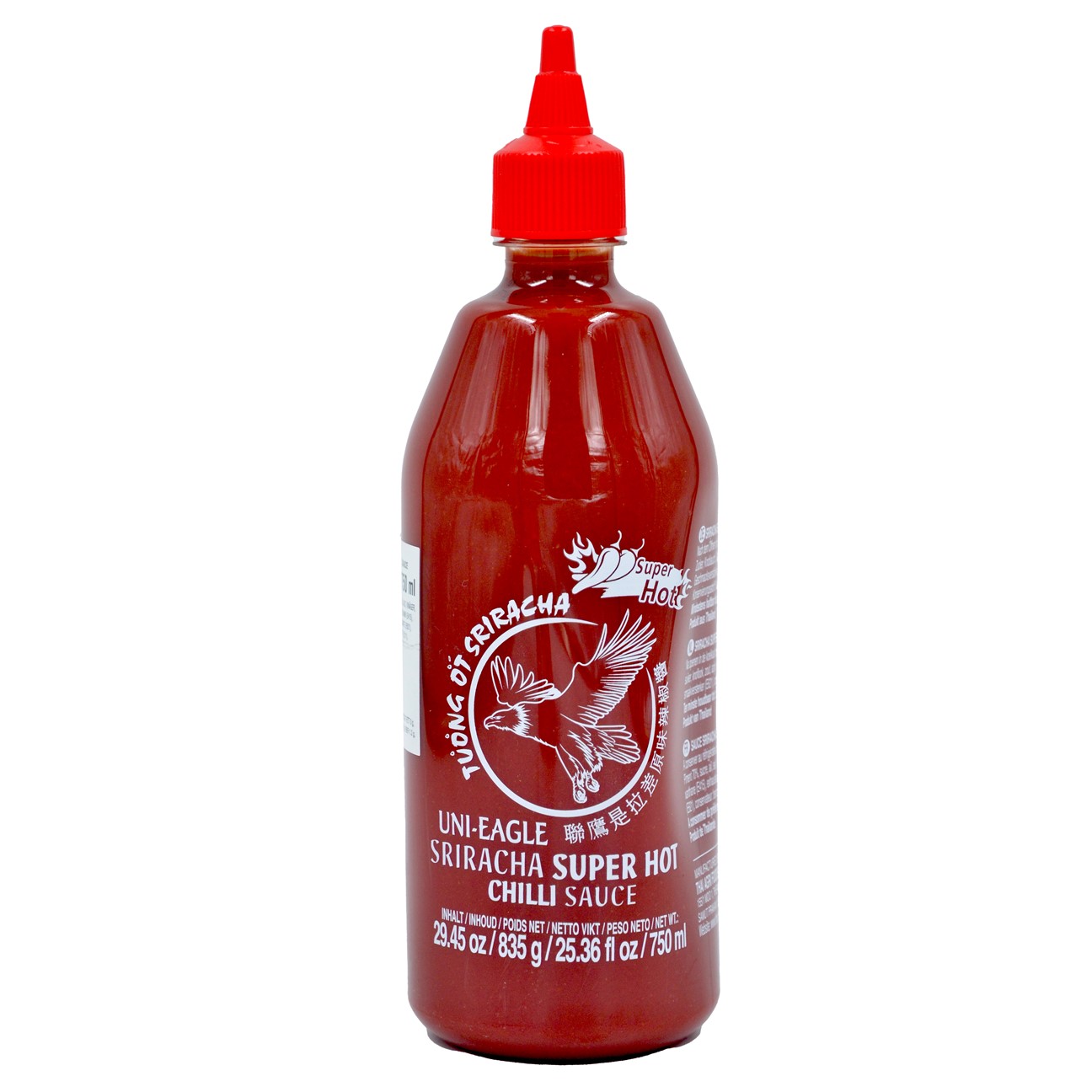 Beskrivning Artikelkategori: Chilisås Produktnamn: Chilisås Sriracha Super Hot Varumärke: Uni-Eagle Förpackningsstorlek: 835g