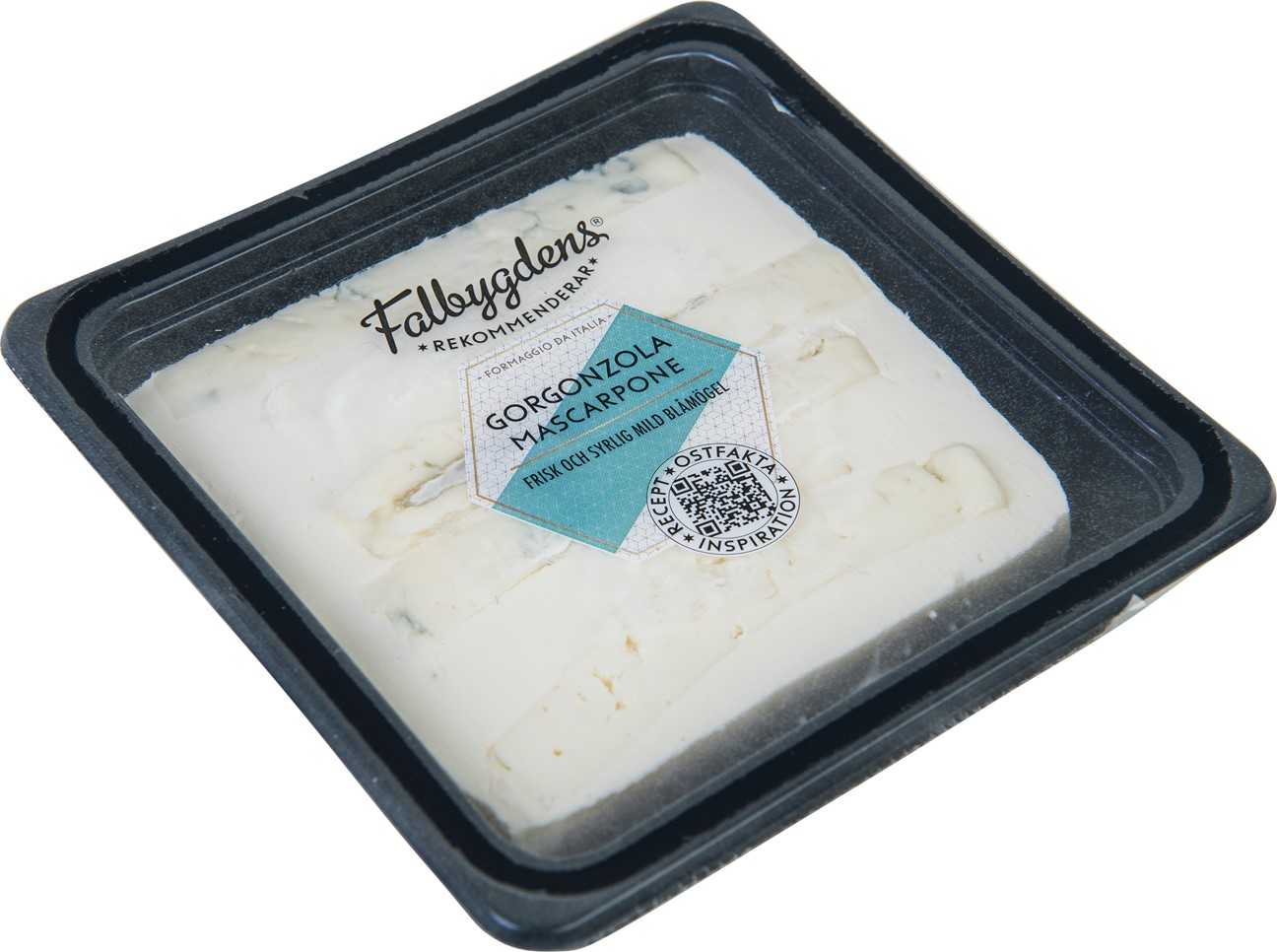 Kombinationen av den friska färskosten Mascarpone och Gorgonzola, en smakrik och mer karaktäristisk blåmögelost, har visat sig vara en fullträff. Idag är det en av Europas mest omtyckta och välanvända ostar. Vid tillverkningen lägger man vartannat skikt med Gorgonola, vartannat Mascarpone, vilket gör att osten får sitt speciella randiga utseende. Lagren av de båda ostsorterna syns tydligt. Ju längre den här osten lagras desto mer utvecklar den mögelfloran, vilket också betyder att den smakar mer. Falbygdens® Rekommenderar Gorgonzola/Mascarpone passar perfekt till ostbricka, men är också en karaktärsfull matlagningsost.