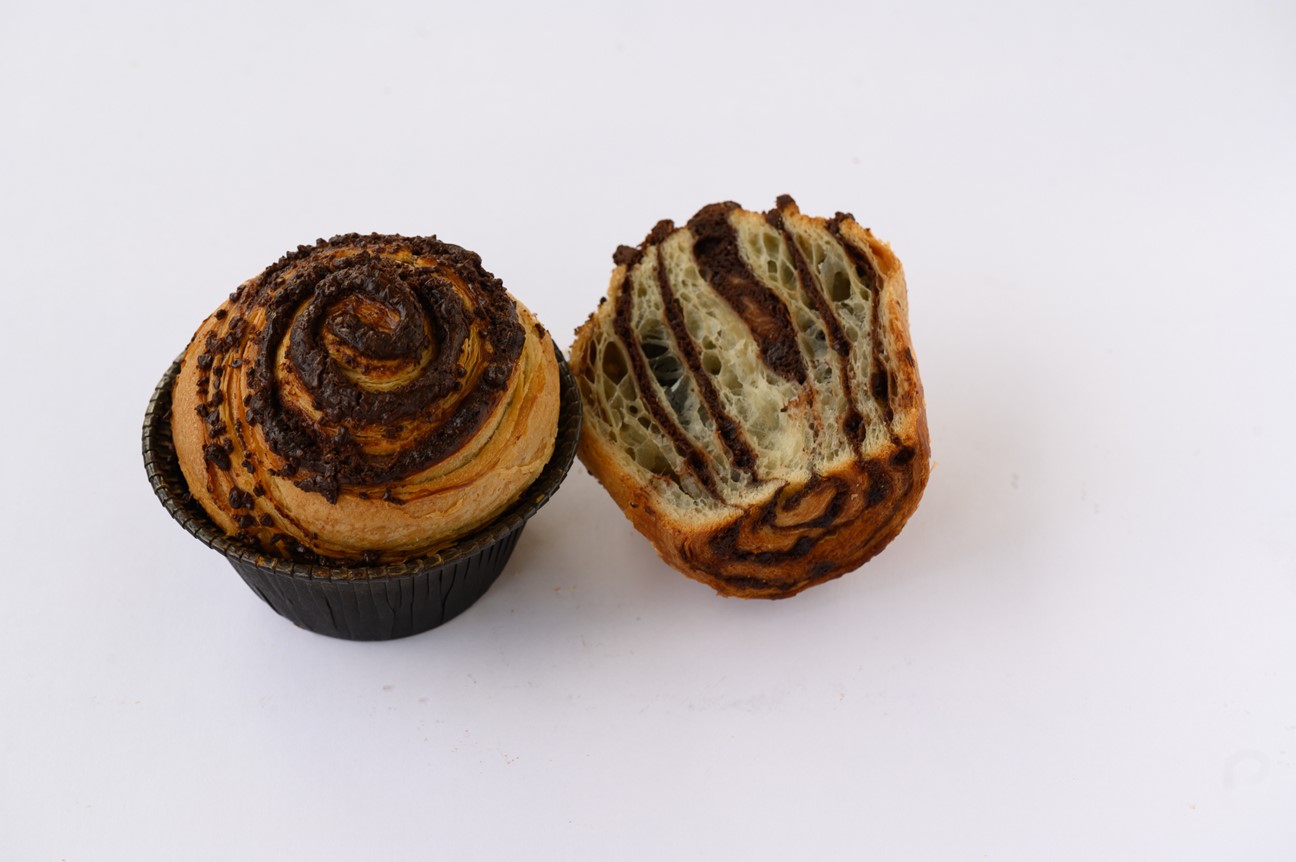 | Marknadsbudskap: | Upplev en sensation av ren njutning med vår chokladfyllda bulle! Vår exklusiva smördeg, tillverkad med noggrant utvalda ingredienser, ger en spröd och smakrik bas för den rika chokladfyllningen. Med sina synliga lager och eleganta spiralliknande utseende lockar denna produkt till sig både ögon och smaklökar. |