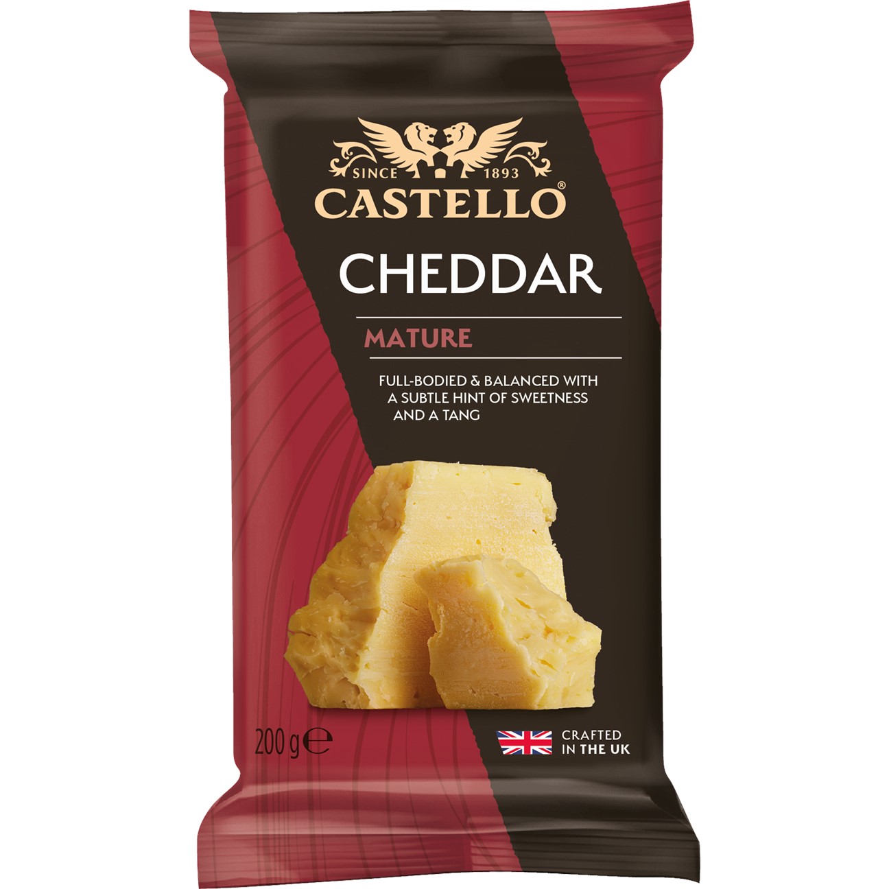 | Marknadsbudskap: | Vår goda cheddar lagras i 12 månader och är en härlig ost med viss sötma, trevlig sälta och en extra smulig textur. Harmoniska smaker, en fast konsistens och en trevligt torr finish är resultatet av en försiktig och noggrann mognadsprocess. Passar perfekt till en lyxig ostbricka, men även i matlagning. Prova den i pastarätter, omeletter eller som ost till ostbricka med chutney eller med rostade nötter. Upptäck möjligheterna med Castello® Mature Cheddar 35% från Arla. |