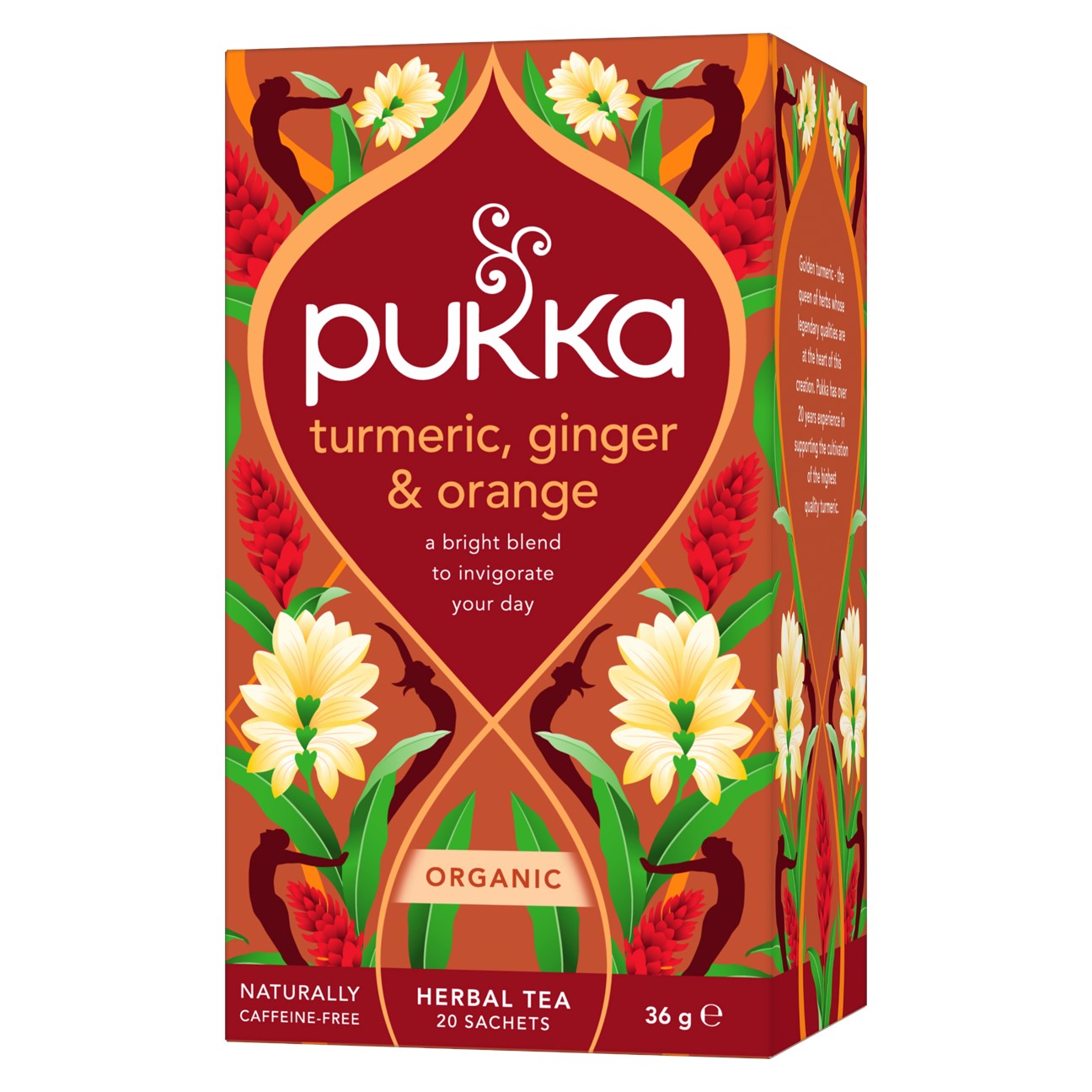 En frisk blandning av finaste ekologiska gurkmeja, ingefära och galangal. Livet är till för att levas. Varje spännande stund blir till rent guld med glöden hos den legendariska gurkmejan. Känn din kropp pulsera av värmen från ingefära och låt gurkmeja och galangal stödja dig i varje steg du tar. Släpp alla hämningar och spring fritt i en gyllene glöd av ekologisk glädje. Turmeric Active är naturligt fri från koffein och självklart både ekologisk och Fair For Life certifierad