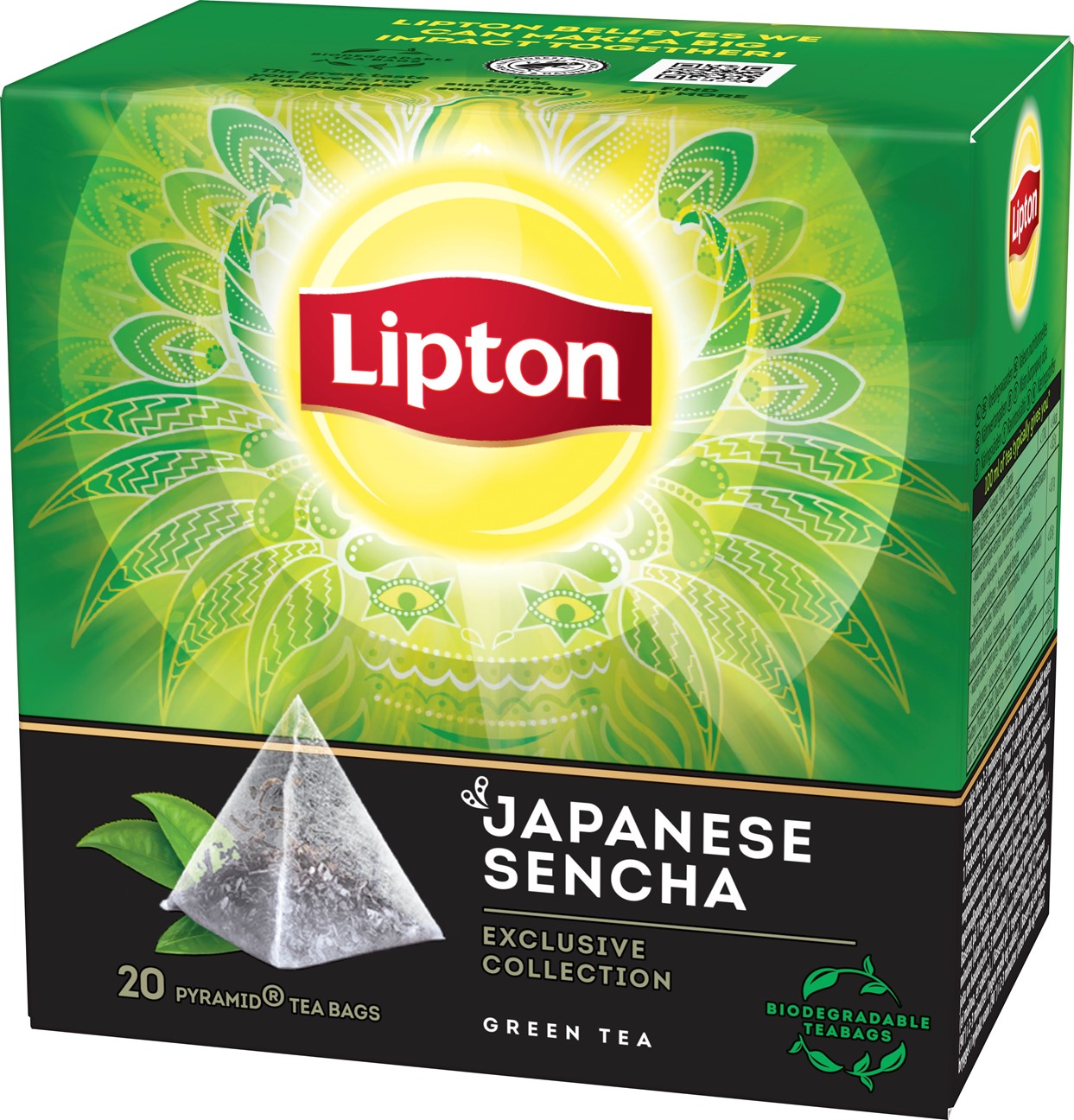 Lipton Green Sencha 20-pack är ett grönt te i pyramidpåsar utan kuvert från Rainforest Alliance certifierade plantage. Teet har en perfekt balans mellan rik tearom av Japansk senchate och rosenblad. Pyramidpåsen gör att de stora tebladen kommer till sin rätt. Påsens pyramidform efterliknar en tesil vilket underlättar för det heta vattnet att strömma genom påsen och ger en smakrik kopp te när du är sugen på något gott.
