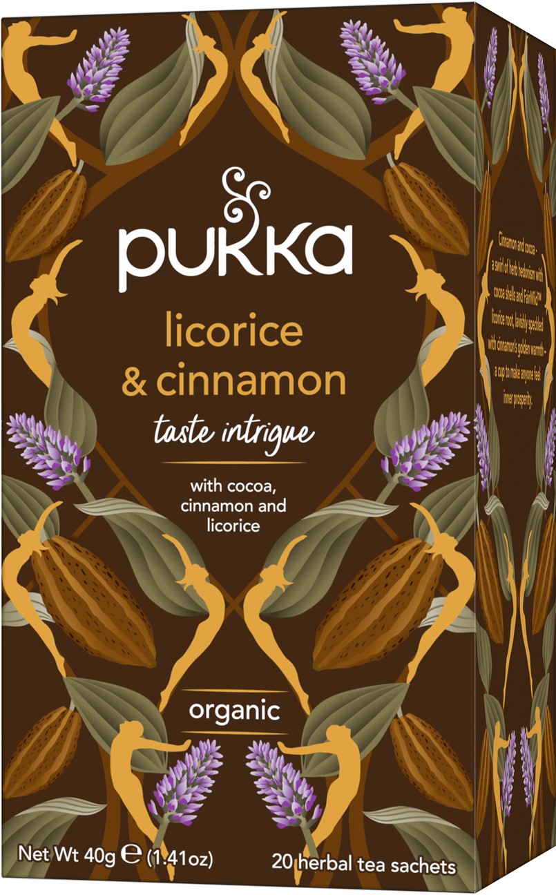 Beskrivning Artikelkategori: Örtte EKO Produktnamn: Örtte Licorice & Cinnamon EKO Varumärke: Pukka Förpackningsstorlek: 4x20 st