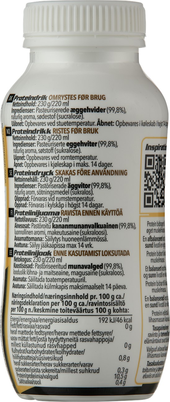 Ingredienser Pastöriserade ÄGGVITOR (99,8%),naturlig arom, Sötningsmedel (Sukralos)