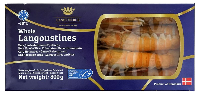 | Artikelbeskrivning: | MSC.Norway Lobster 8-12/kg. 6x100 |