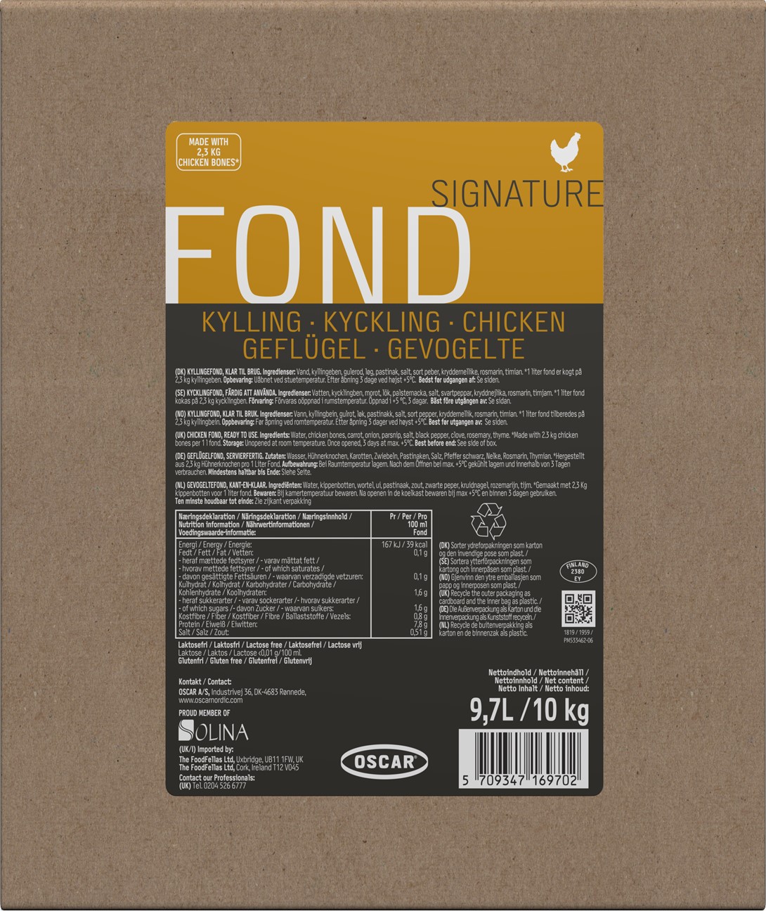 | Artikelbeskrivning: | OSCAR Signature Kycklingfond 9,7 l / 10 kg bag in box |