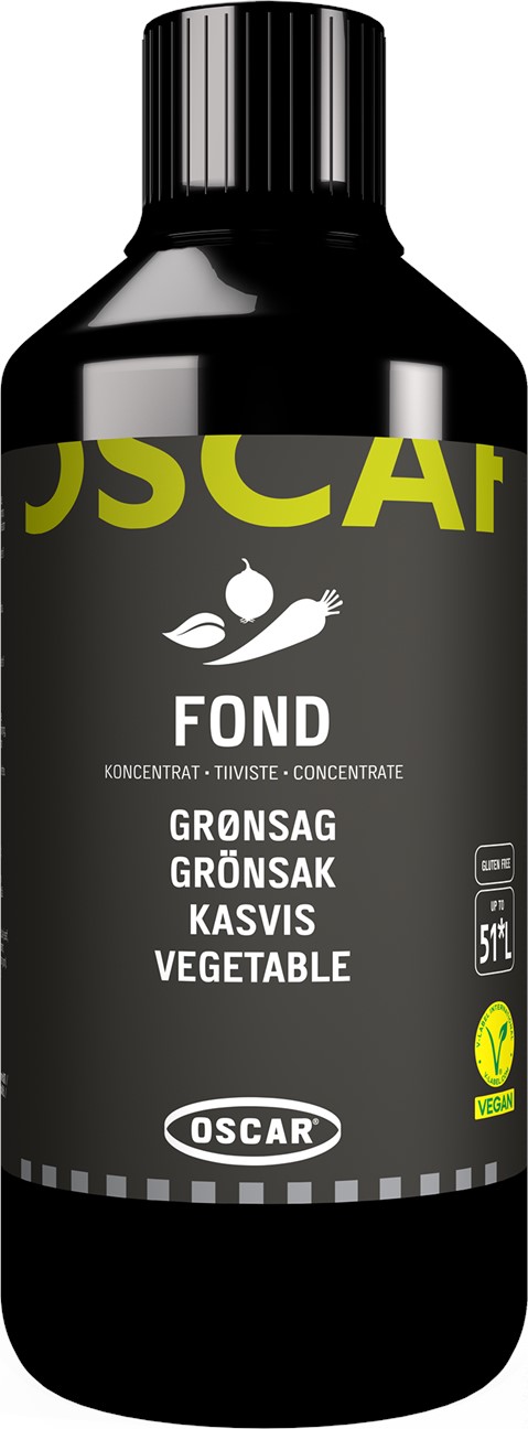 | Serveringsförslag: | Med OSCAR Grönsaksfond koncentrat får du en smakrik grönsaksbas. OSCAR Grönsaksfond har en genuin smak och massor av användningsområden. Du kan använda OSCAR Grönsaksfond i vegetariska rätter för att tillsätta extra smak och kryddor. OSCAR Grönsaksfond kan också användas i soppor och såser, i grytstekslag eller steklag. Prova till exempel att smaksätta risotto med OSCAR Grönsaksfond koncentrat. Använd den i kalla rätter, som till exempel i en vinägrett eller en dressing eller för att marinera grönsaker. En flaska med 1 l koncentrat ger upp till 51 l fond. |