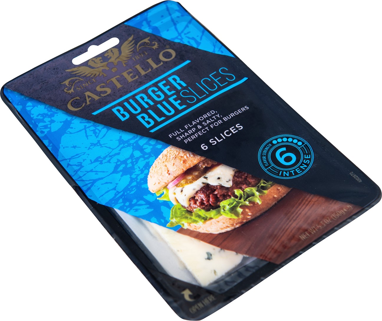 Gillar du ost på hamburgare och vill testa hamburgare blue cheese? Prova Castello® Burger Blue 37% – en skivad blåmögelost med nötig karaktär som passar utmärkt när du vill göra en extra god och smakrik hamburgare med ost. För bästa resultat lyft ut vår hamburgerost ur förpackningen med hjälp av papperet och lägg ädelosten på hamburgaren direkt efter vändning.