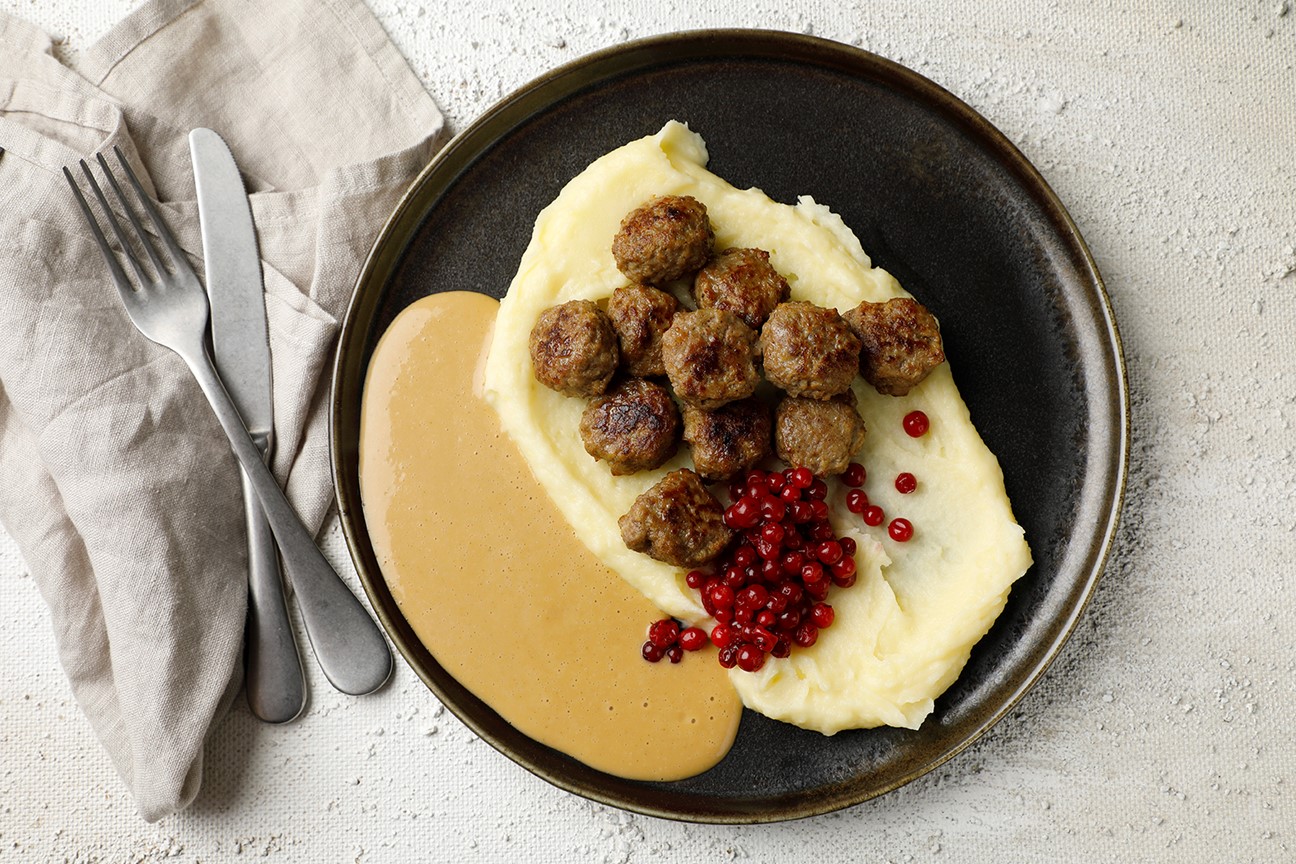 Vår lyxigaste köttbulle där receptet bygger på ett svenskt klassiskt recept. Här tillverkar vi köttbullen enligt alla konstens regler och låter ströbrödet svälla innan vi blandar det med den nymalda köttfärsen och löken har vi brynt i smör. Inget lämnas till slumpen, utan detta är vår absolut finaste köttbulle med hög kötthalt.