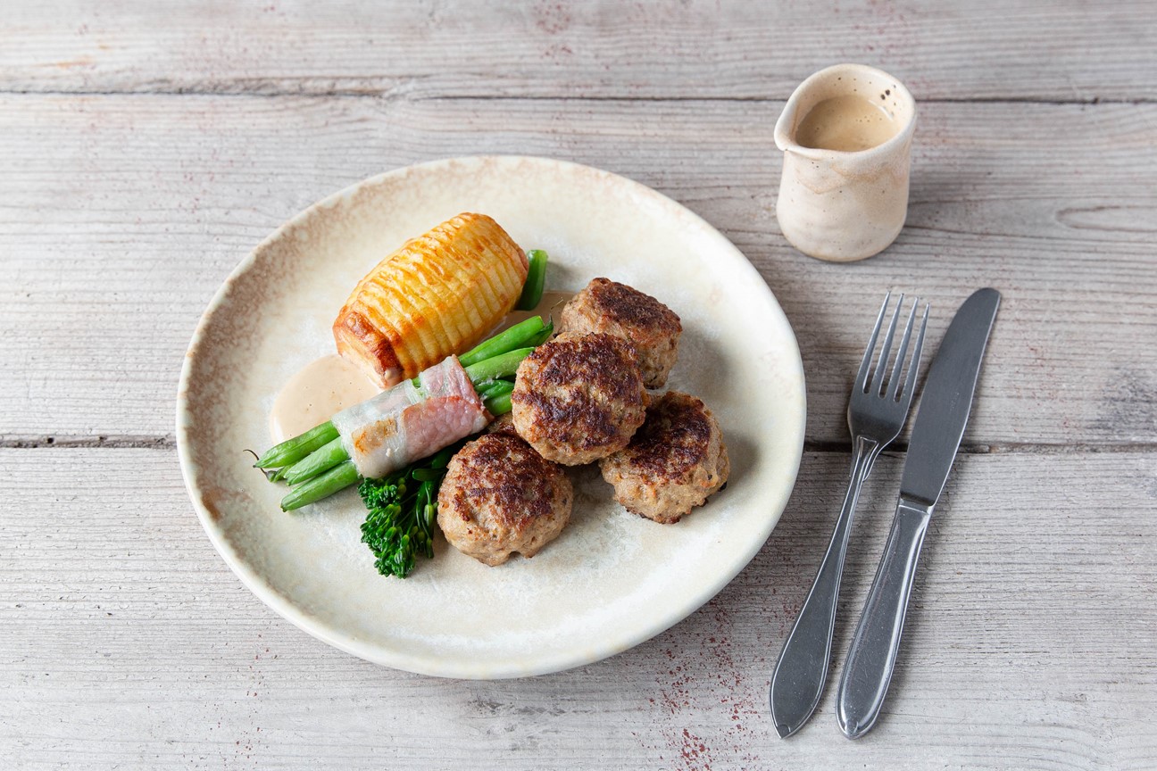 | Ingrediensförteckning: | Nötkött 35 %, griskött 35 %, ÄGG, lök, laktosfri GRÄDDE [GRÄDDE, stabiliseringsmedel (E407)], skorpmjöl (VETEMJÖL, jäst), vatten, salt, peppar 0,5 % (svart-, rose-, grön- och cayenne), rapsolja. Kötthalt 70 %. |