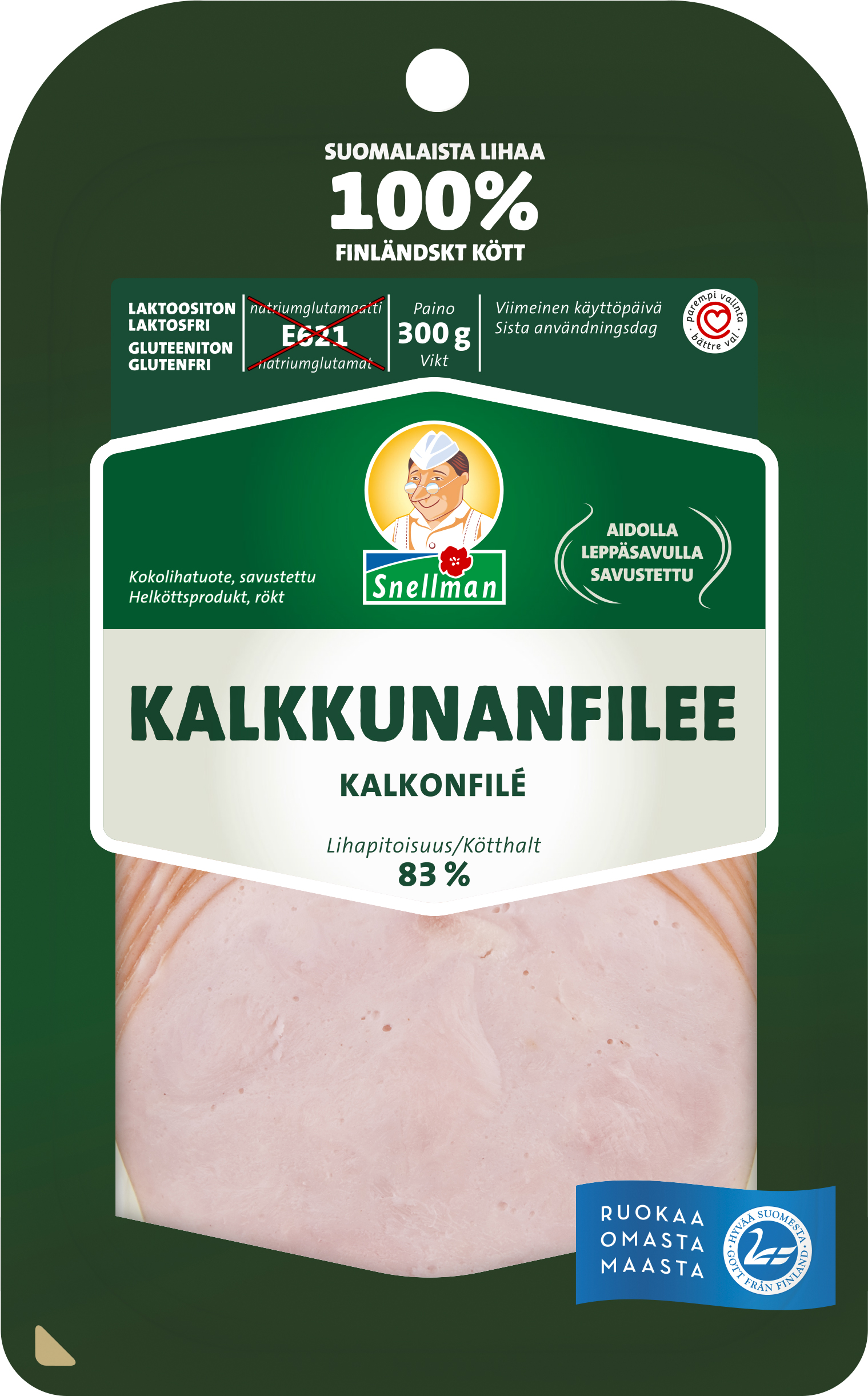 kalkonköttet som används i våra produkter är 100 % inhemskt. Vi har ingen egen produktion av kalkon- och kycklingkött utan tar köttet från våra finska samarbetspartners.