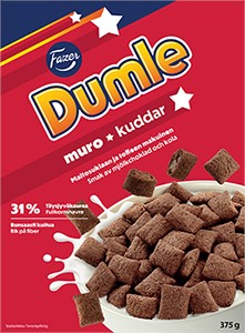 Din chokladfavorit, Dumle - nu som flingor! Dumle kuddar är läckra mjölkchokladkuddar, fyllda med god kolasmak. Dessa krispiga kuddar innehåller fullkorn från havre och är rika på fibrer. Njut dem till frukost som mellanmål eller bara när du vill unna dig lite extra. Dumle kuddar- för alla läckra stunder!