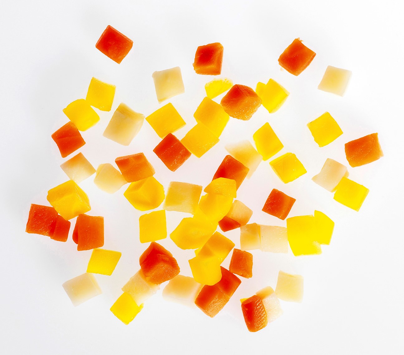 Små rotsaktärningar med gul morot, morot och palsternacka perfekt blandning.