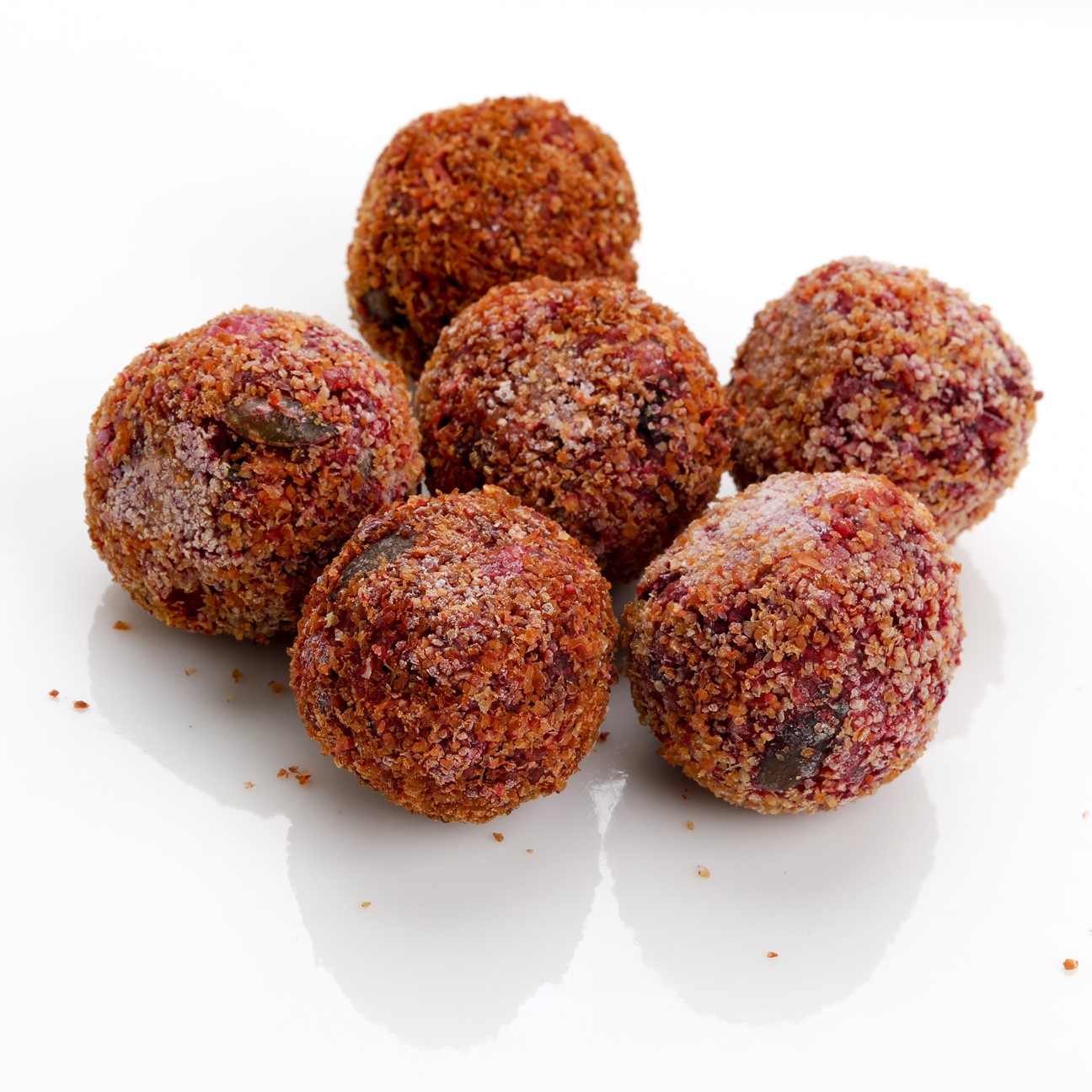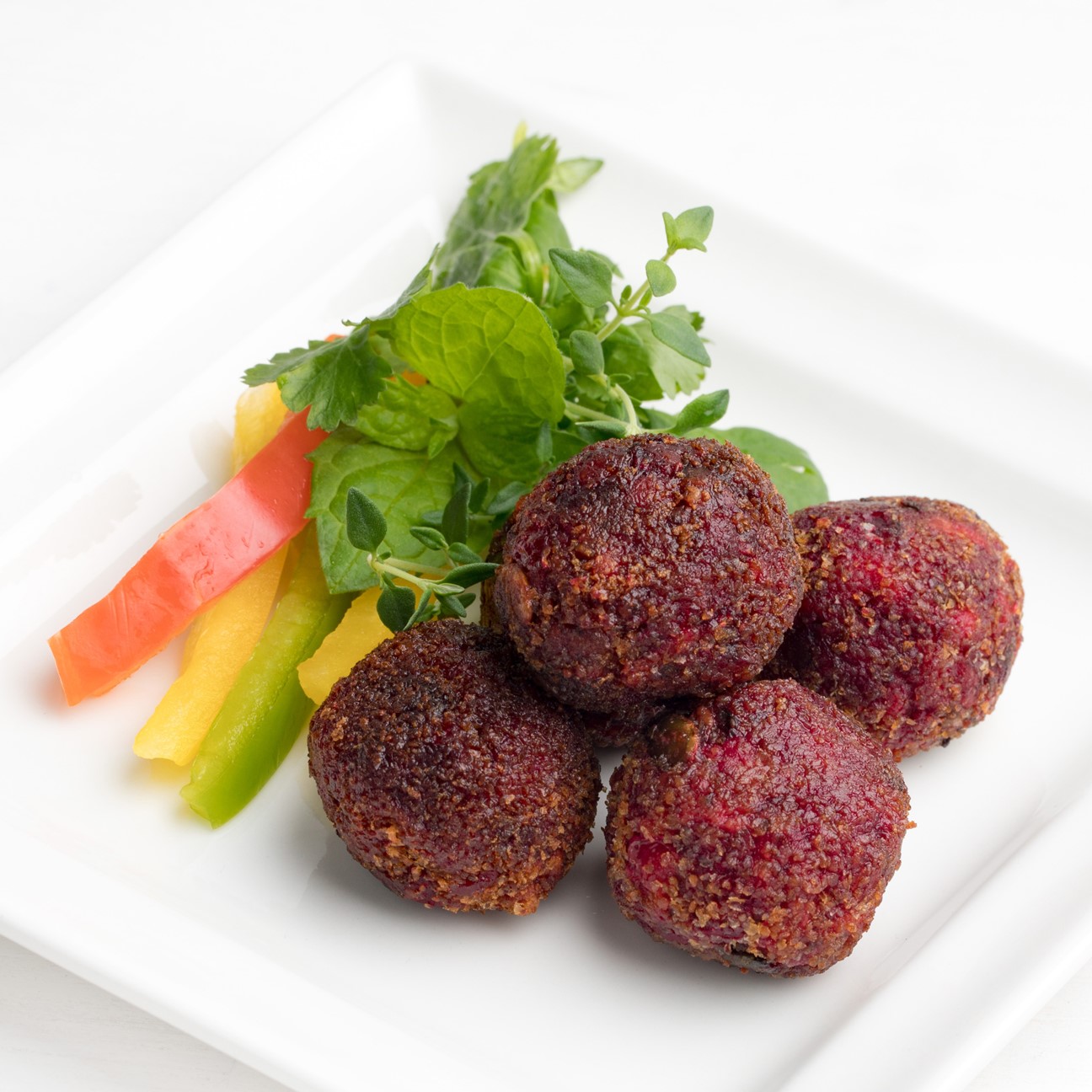 Rödbetsbullar som är panerad med potatisgryn, lägg till valfritt tillbehör för en god måltid.