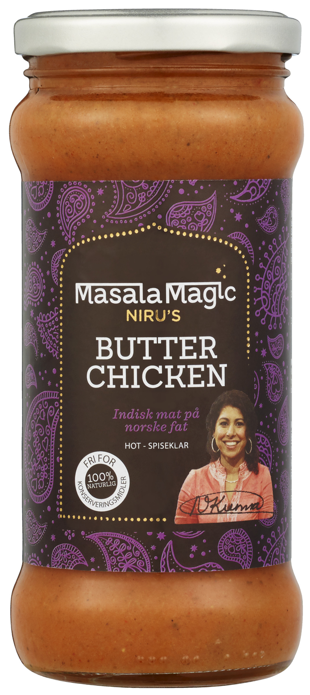 Niru har skapat en autentisk Punjabi Butter Chicken med kvalitetskryddor. Det är basen för den festliga rätten från det nordindiska köket, Punjab. De aromatiska kryddorna ger dig den autentiska smaken av din favoriträtt som är lika god med grönsaker, kikärtor, scampi, kyckling och kött.