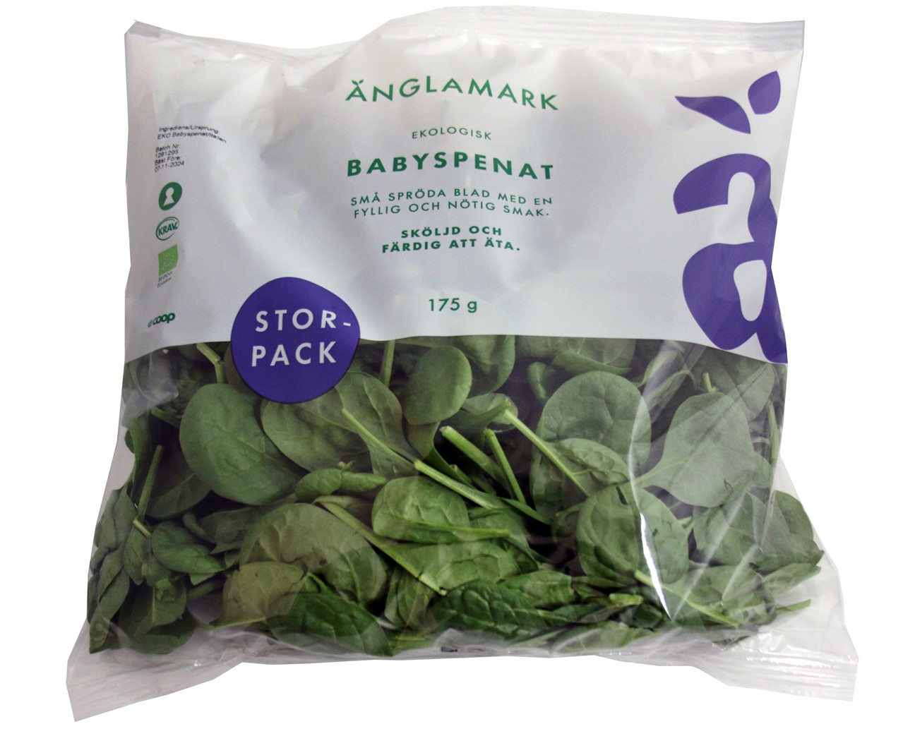 Babyspenat, KRAV märkt, ekologiskt, Änglamark. Sköljd och färdig att äta