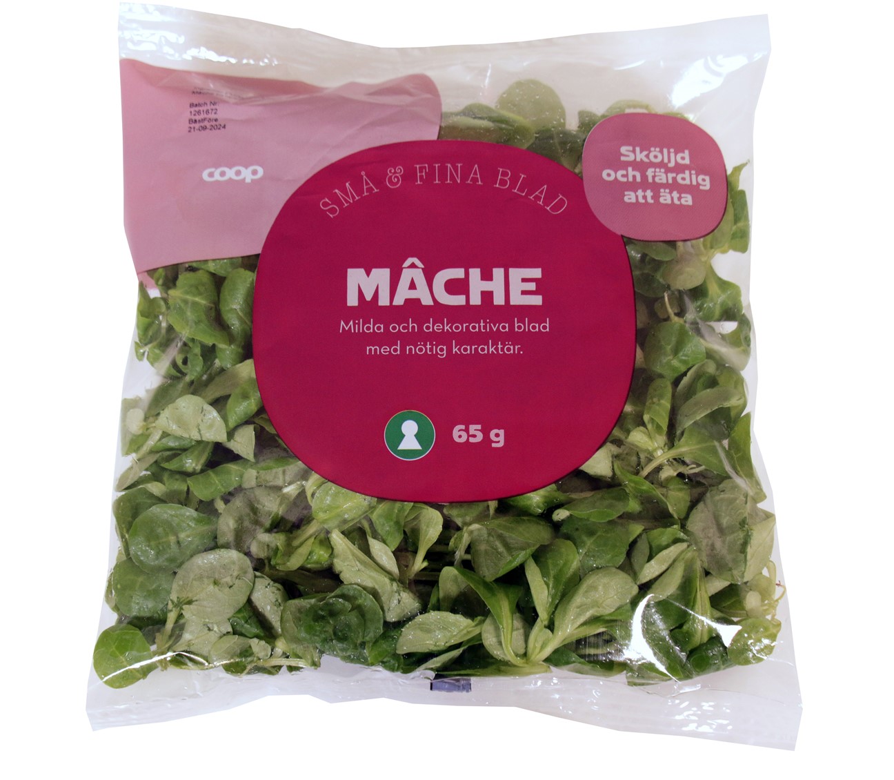 | Sökbegrepp E-handel | Mâche sallat. Sköljd och färdig att ätas. |