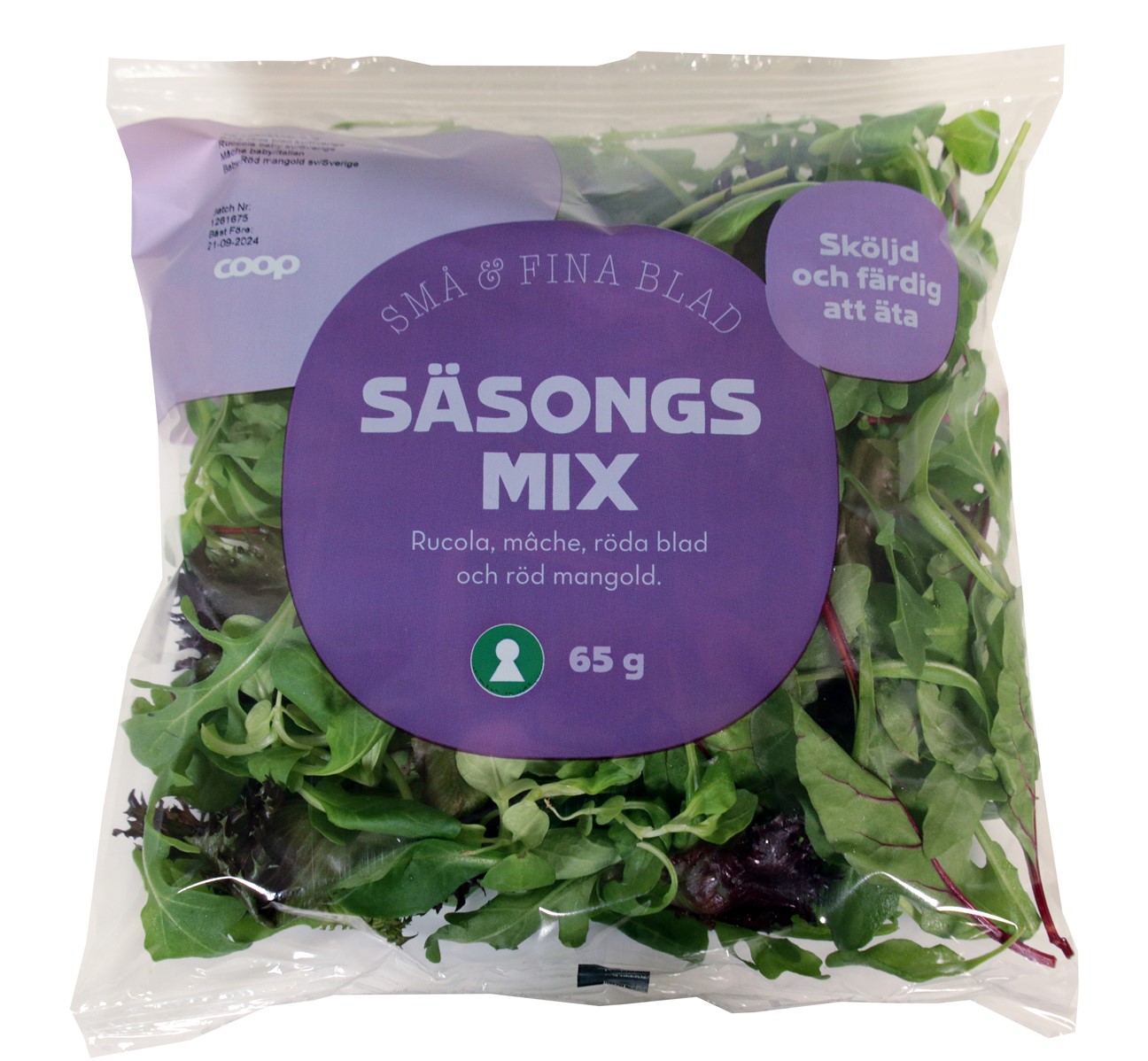 Beskrivning Artikelkategori: Grönsaksblandningar Produktnamn: Säsongsmix Varumärke: Coop Förpackningsstorlek: 6x65gr