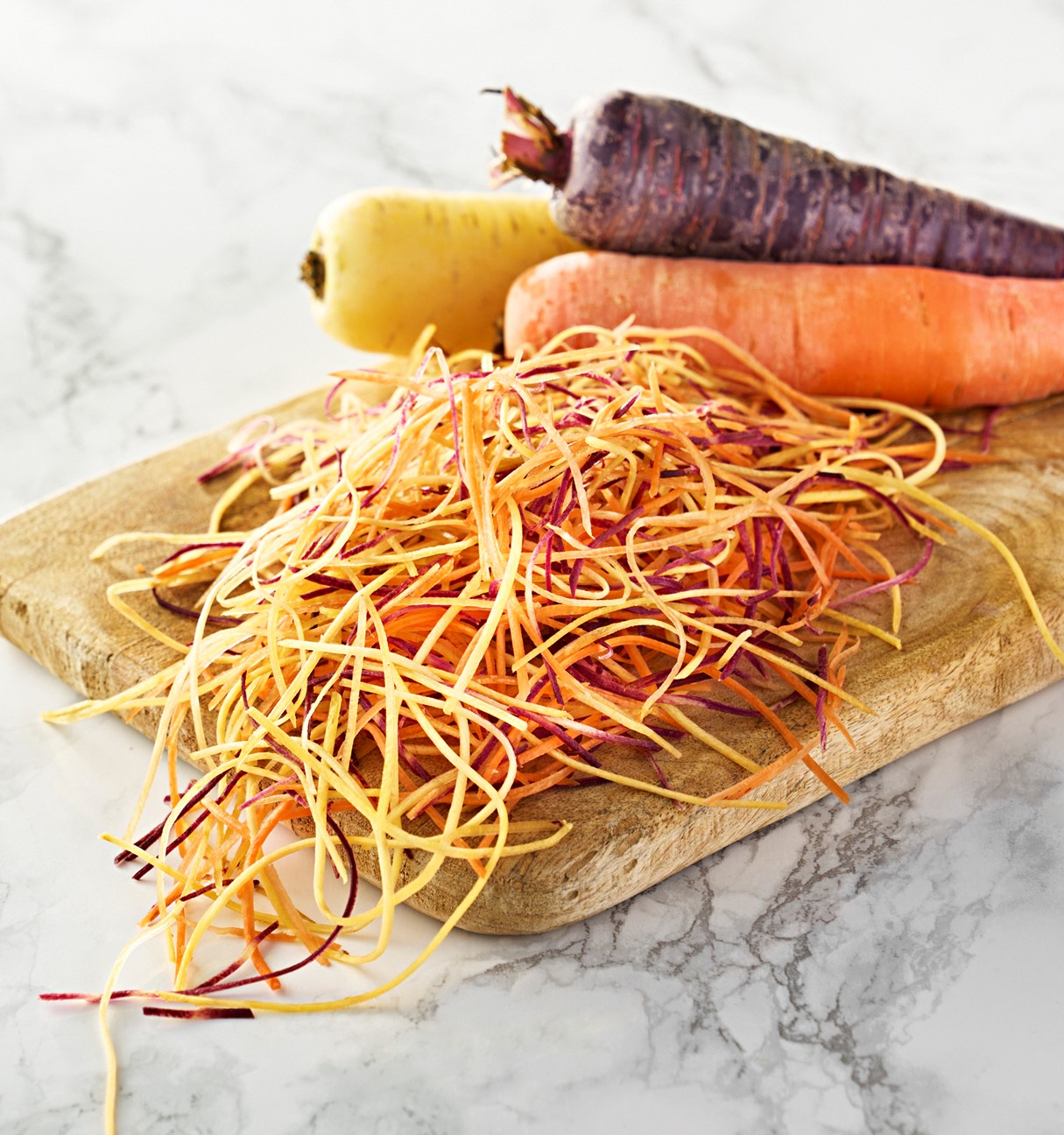 Finriven morotmix i olika färger. Passar utmärkt till grönsaksbiffar eller grönsaksbollar.