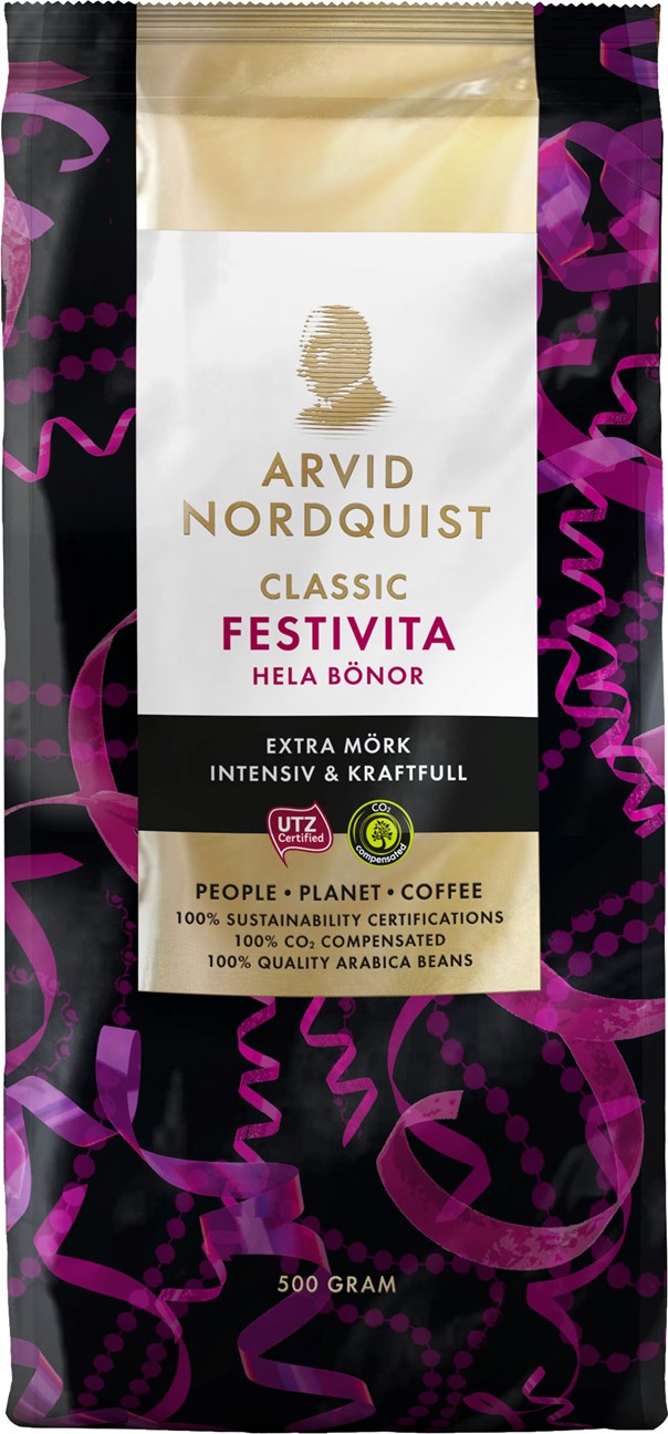 Arvid Nordquist, Arvid Nordqvist, Arvid Nordkvist, Classic, Klassik, Klassisk, kaffe, mörkrost, extra mörkrost, Festivita, kaffebönor, hela kaffebönor, hela bönor, certifierat, klimatkompenserat, arabica, arabicabönor, Rainforest Alliance, Rainforest