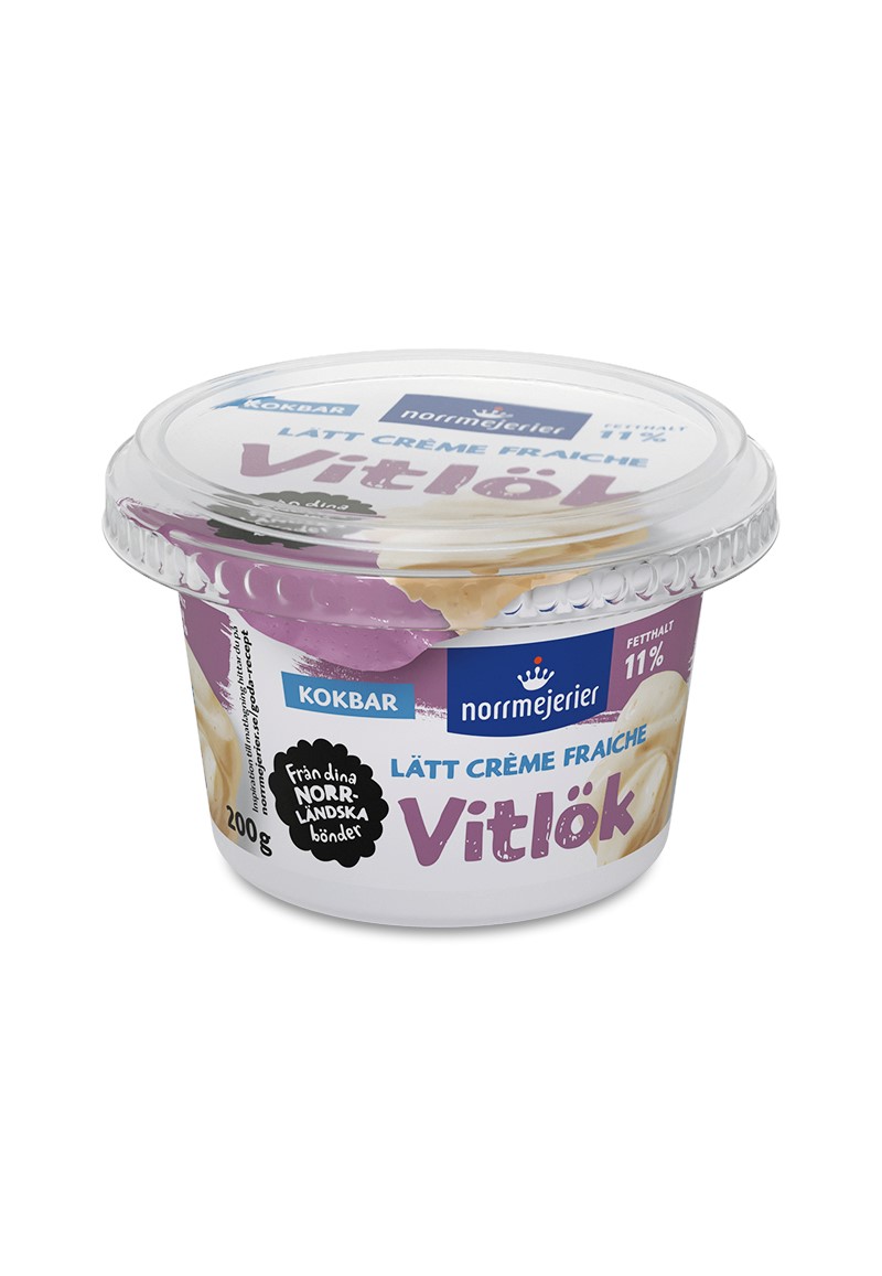Lätt Crème fraiche Vitlök från Norrmejerier är enkel att använda och passar bra till det mesta. I pastan, grytan som dipp eller kall sås. Och glöm inte att lägga en klick Lätt Crème fraiche Vitlök på din taco så blir den extra god! Som alla av Norrmejeriers produkter är den gjord på 100% norrländsk mjölk från norrländska bönder.