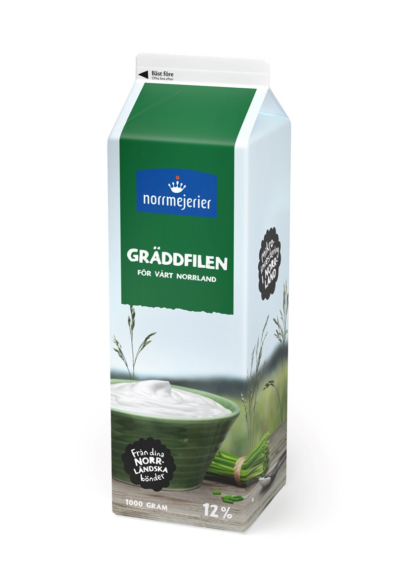 Kort marknadsbudskap: | Norrmejeriers gräddfil 12% tillverkas av färsk grädde från norrländska gårdar. Gräddfil har en svag syrlig och gräddig smak med en lätt krämig konsistens. Gräddfil passar bra till soppor och grytor, till tacos, bakade pajer och kalla såser |