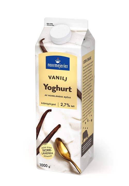 Norrmejeriers vaniljyoghurt med 2,7% fetthalt är fantastiskt god och krämig och passar perfekt till frukost eller som mellanmål. Den innehåller mald vaniljstång och passar utmärkt till smoothies eller som den är med ditt favorittillbehör. Vår vaniljyoghurt är en naturlig källa till protein, och dessutom är den rik på vitamin D som vi här uppe i Norrland behöver lite extra av, speciellt under det mörka vinterhalvåret då det är extra svårt att tillgodogöra sig vitaminet. Som alla av Norrmejeriers produkter är den gjord på 100% norrländsk mjölk från norrländska bönder.