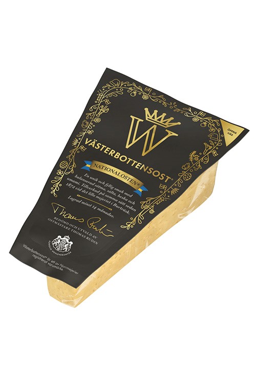 | Marknadsbudskap: | Västerbottensost® är en svensk grynpipig hårdost gjord på norrländsk komjölk och tillverkad vid det lilla mejeriet i Burträsk i Västerbotten. Den har en karaktäristisk, fyllig smak och en lagringstid om minst 14 månader. Svårskivad, men ändå älskad till såväl smörgåsen som riven i matlagningen till paj, tacos eller gratäng. Även utmärkt på ostbricka! Osten är tillverkad ända sedan 1872 då mejerskan Ulrika Eleonora Lindström skapade det hemliga receptet. Sedan 1990 är Västerbottensost® Kunglig Hovleverantör och har serverats på många kungliga tillställningar och Nobelmiddagen. Västerbottensost® är helt enkelt en unik bit av svensk mathistoria. |