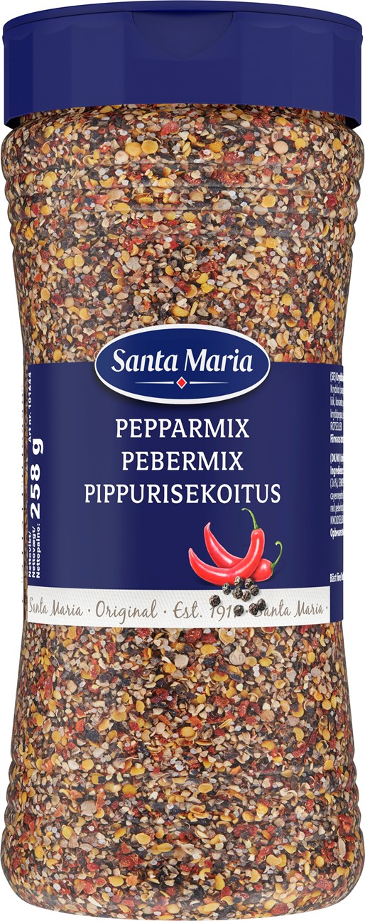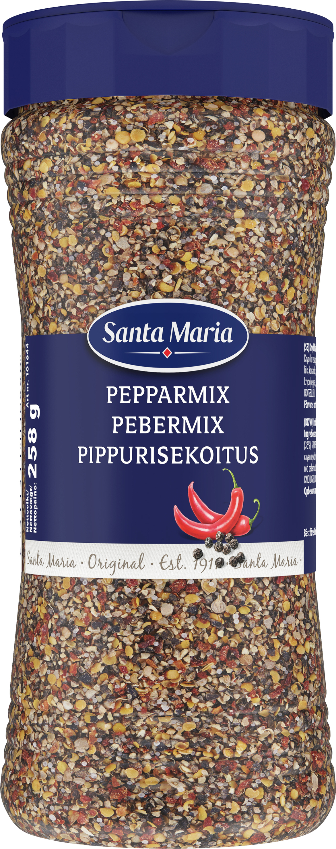 Pepparmix är en aromatisk kryddblandning med fin pepparsmak och lagom sälta. Pepparmix passar perfekt till stekt och grillat kött, till exempel pepparstek. Pepparmix sätter också fin smak på färsrätter, grytor och såser. Använd Pepparmix som bordskrydda, eller som pepprig smaksättare vid spis och grill. • Pepparmix förvaras mörkt och torrt för att bevara aromen längre