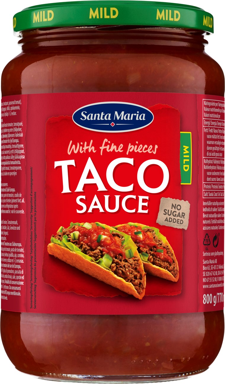 | Ingrediensförteckning: | Tomat (65%)(krossad tomat, tomatpuré, passerad tomat), vatten, lök, grön paprika, ättika, majsstärkelse, salt, kryddor och örter (chilipeppar, vitlök, spiskummin, grön jalapeño, koriander, oregano). |