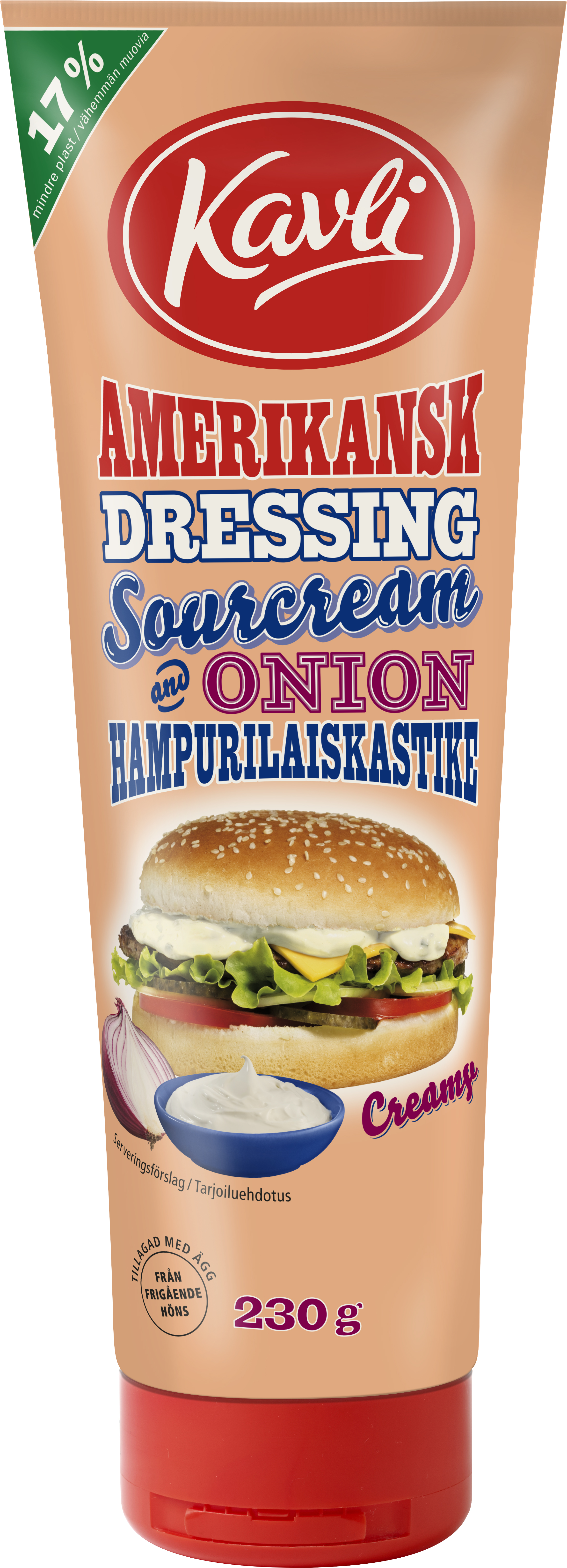 dressing, hamburgerdressing, burgardressing, burgare, hamburgare, amerikansk, amerikansk dressing, krämig, ägg från frigående höns, kavli, tub, sourcream, sourcreamdressing.