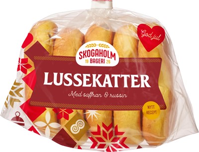 | Marknadsbudskap: | Skogaholm Lussekatter – Våra gyllengräddade och saftiga lussekatter är noggrant bakade med saffran och russin. Bjud in familj och vänner på en härlig adventsfika! |