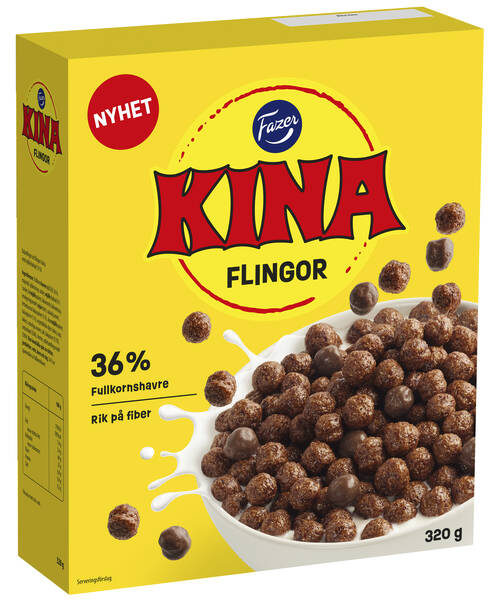 Vår chokladklassiker KINA, nu som flingor. KINA flingor är den perfekta kombinationen av kakaoflingor och mjölkchokladöverdragna flingor. Dessa krispiga chokladflingor är rika på fiber och innehåller 36% fullkorn. KINA flingor för alla läckra stunder!