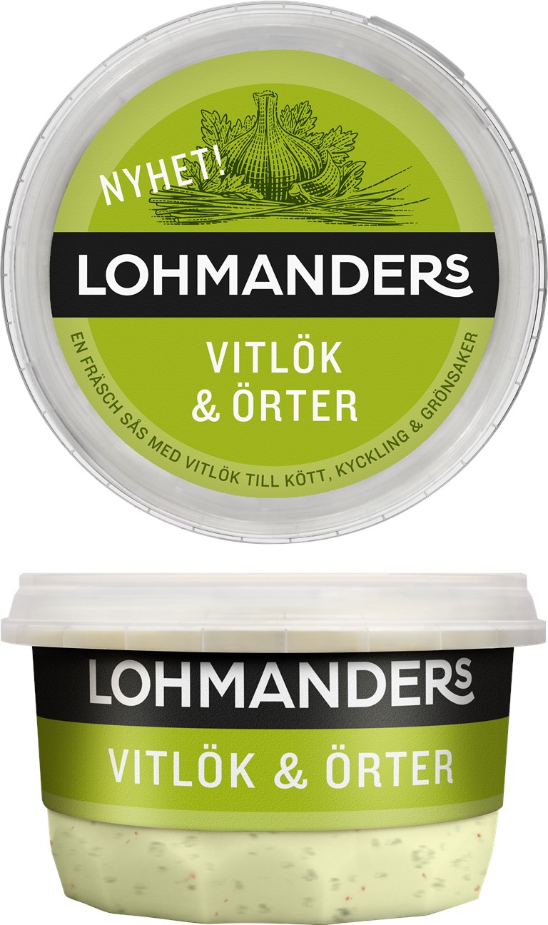 | Marknadsbudskap: | Lohmanders Vitlök & Örter är en krämig och fräsch sås med en tydlig örtsmak och välbalanserad vitlöksmak. Passar lika bra till grillmiddagen som till festliga tillfällen året runt, vardagslyx som helglyx när man vill ha det där lilla extra. Perfekt till kött och kyckling men även till vegetariskt. |