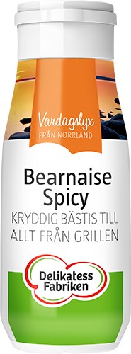 | Marknadsbudskap: | Förhöj dina måltider med Delikatessfabrikens Bearnaise Spicy – en hetare variant av vår klassiska bearnaisesås. Denna sås lyfter varje måltid till nya höjder med sin fylliga smak och hetta, men passar extra bra till kött och kyckling. |
