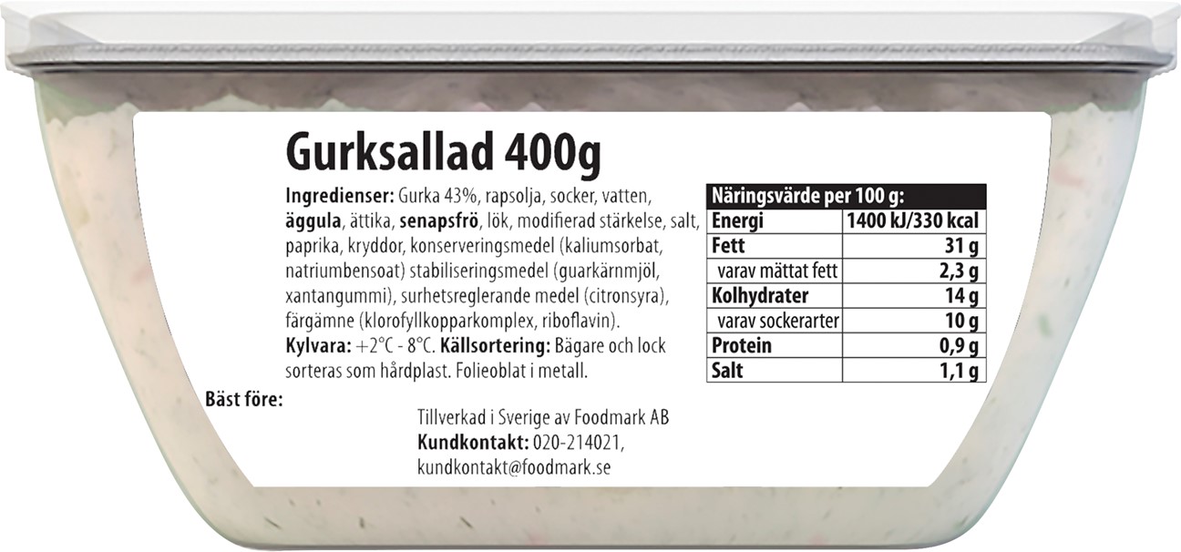 307213814664 / Färskvaror/Kylvaror -- Majonnäs/Majonnäsprodukter -- Majonnäsbaserade sallader -- Gurksallad