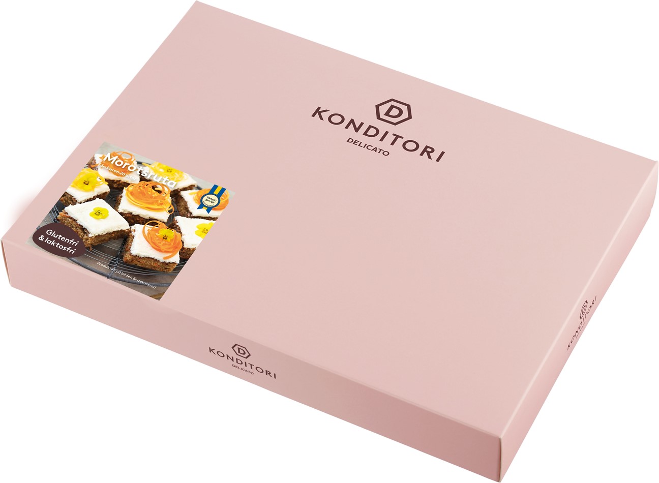 | Marknadsbudskap: | Kryddig glutenfri morotsruta med rivna morötter, glacerad med en krämig topping av laktosfri färskost. Glutenfri. Laktosfri. Palmoljefri. Förskuren 20 bitar x 75g (1500g). |