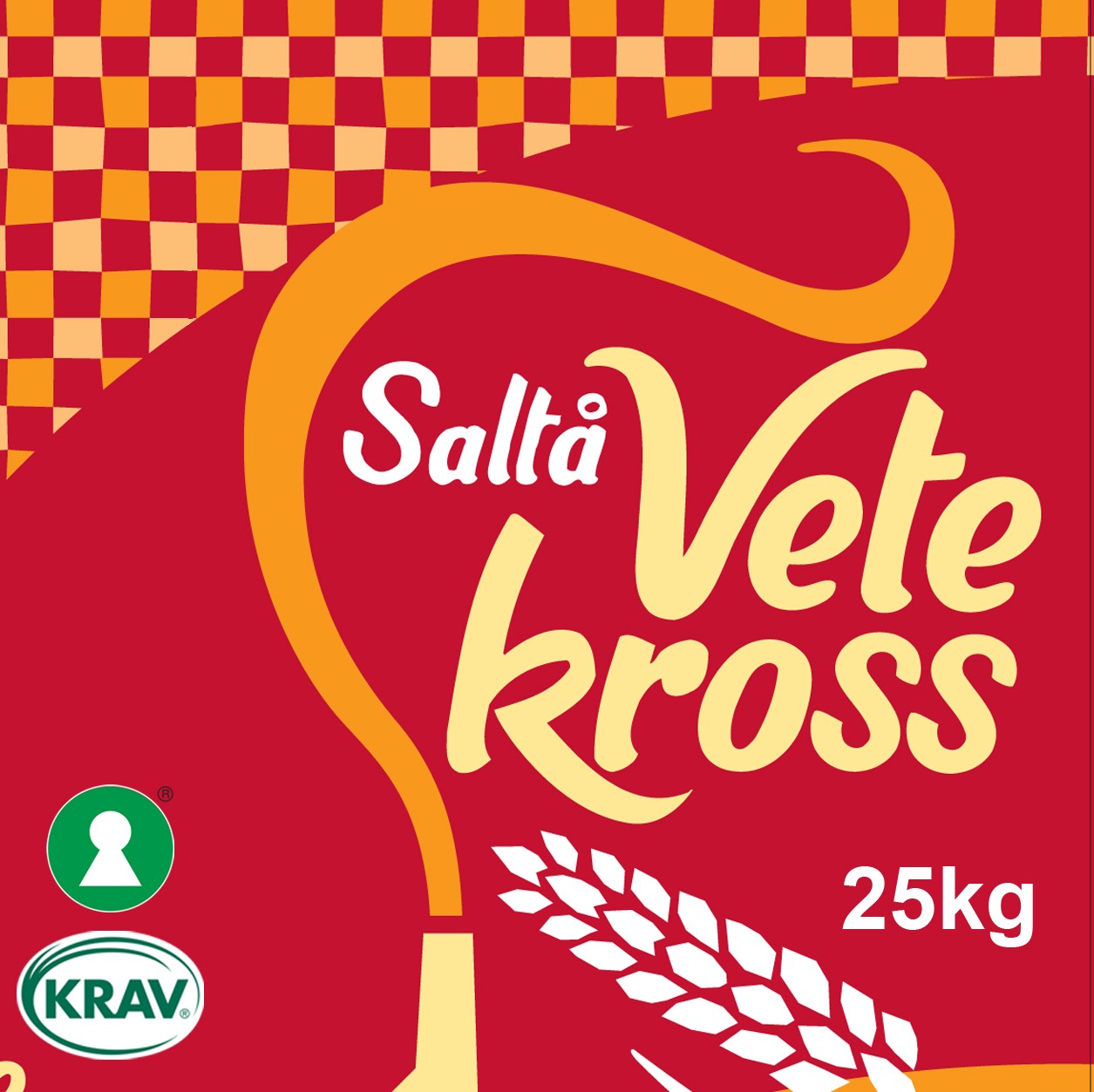 | Marknadsbudskap: | Saltå Vetekross framställs av helt fullkornsvete som klippts i bitar. Både kli och grodd finns kvar och den är rik på kostfiber, magnesium och järn. Vetekross passar bra till gröt och är jättegott i bröd. Vid brödbak kan 20 % av mjölet ersättas av vetekross. Det gör brödet extra gott och saftigt. Koka då vetekrossen utan salt. |
