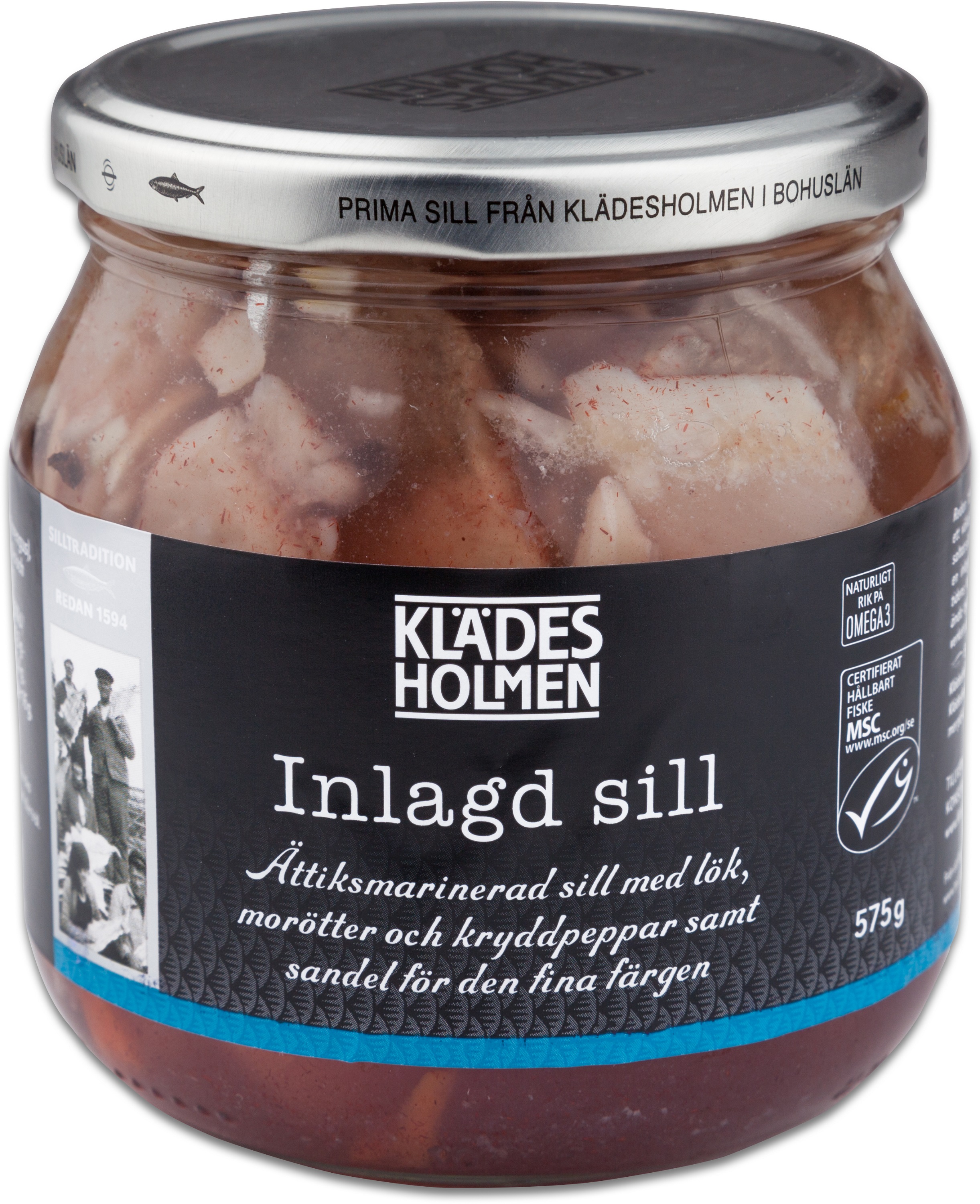 INGREDIENSER: SILL i bitar (Clupea harengus), vatten, socker, lök, salt, morot, ättika och kryddor. Konserveringsmedel E211.