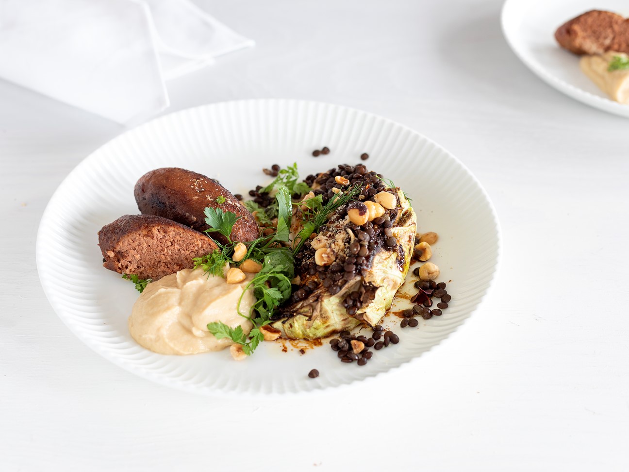 | Ingrediensförteckning: | Rehydrerat ärtprotein (50%), vatten, rapsolja, vegetabiliskt fett (kokos, shea), förtjockningsmedel (E461), arom, salt, maltodextrin, citrusfibrer, färgämne (sockerkulör), citronjuice, konserveringsmedel (E202, E262), rödbetsextrakt, krossad svartpeppar. |