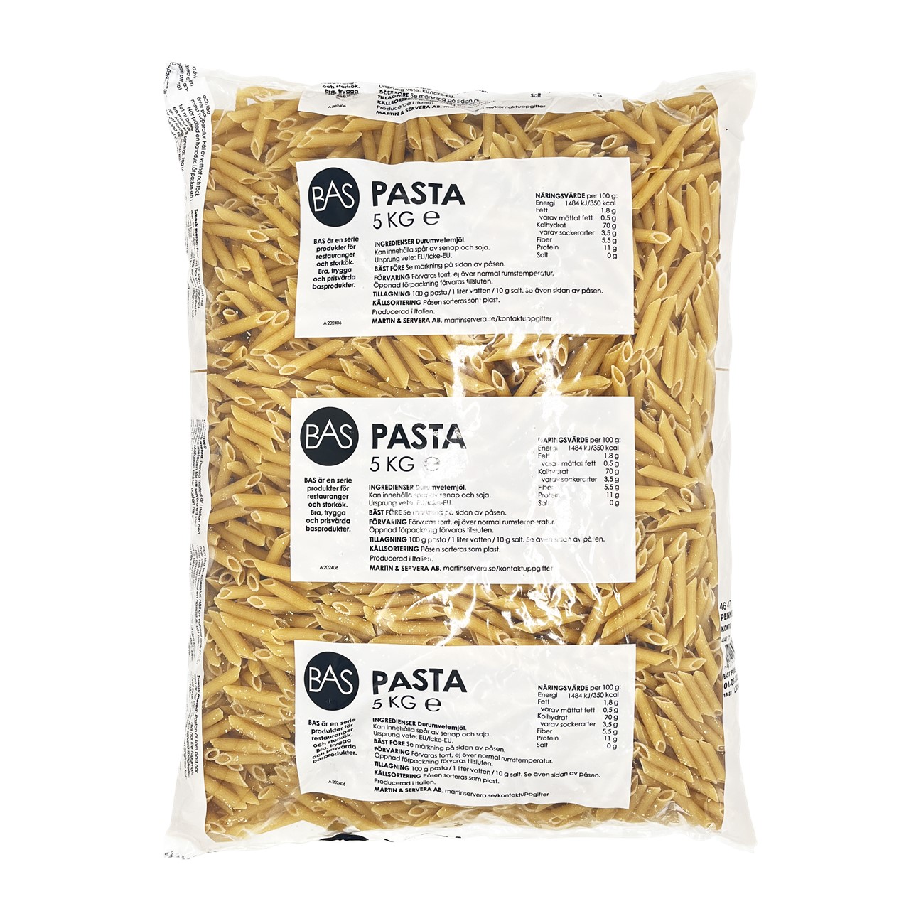 | Marknadsbudskap: | Tillaga genuina pastarätter med vår Penne Rigate, tillverkad av durumvete. Denna pasta är perfekt för en mängd olika rätter och passar särskilt bra för gratänger tack vare sin rörform. För att få bästa smak och konsistens, koka pastan al dente. Förpackningen innehåller 5 kilo pasta. |