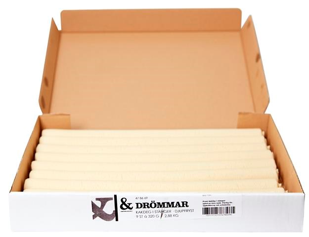 Baka klassiska Drömmar med färdig kakdeg. Låt degen tina och kubba sedan upp degen för uppkubbning och avbakning. Grädda sedan Drömmarna i ugnen till önskad färg och konsistent. Producerade på Gotland med äkta smör för en traditionell smak. En degstång väger 320 gram och en förpackning innehåller 9 stänger.