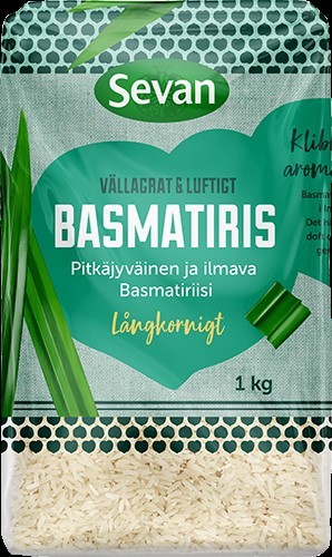 Ett aromatiskt och långkornigt basmatiris som efter kokning ska vara lätt och luftigt med separerade riskorn. Den aromatiska doften är nötaktig och lite smörig. Riset föredras i många av köken i Mellanöstern, Indien och Pakistan. Den persiska tillagningsmetoden av basmati, chelo, brukar lyftas fram som det godaste sättet att avnjuta detta ris. Ett bra basmatiris ska torkas och lagras för att utveckla arom och smak, vårt basmatiris har lagrats i minst två år innan det packas. Vårt basmatiris odlas i Pakistan och innehåller 98 procent hela riskorn.