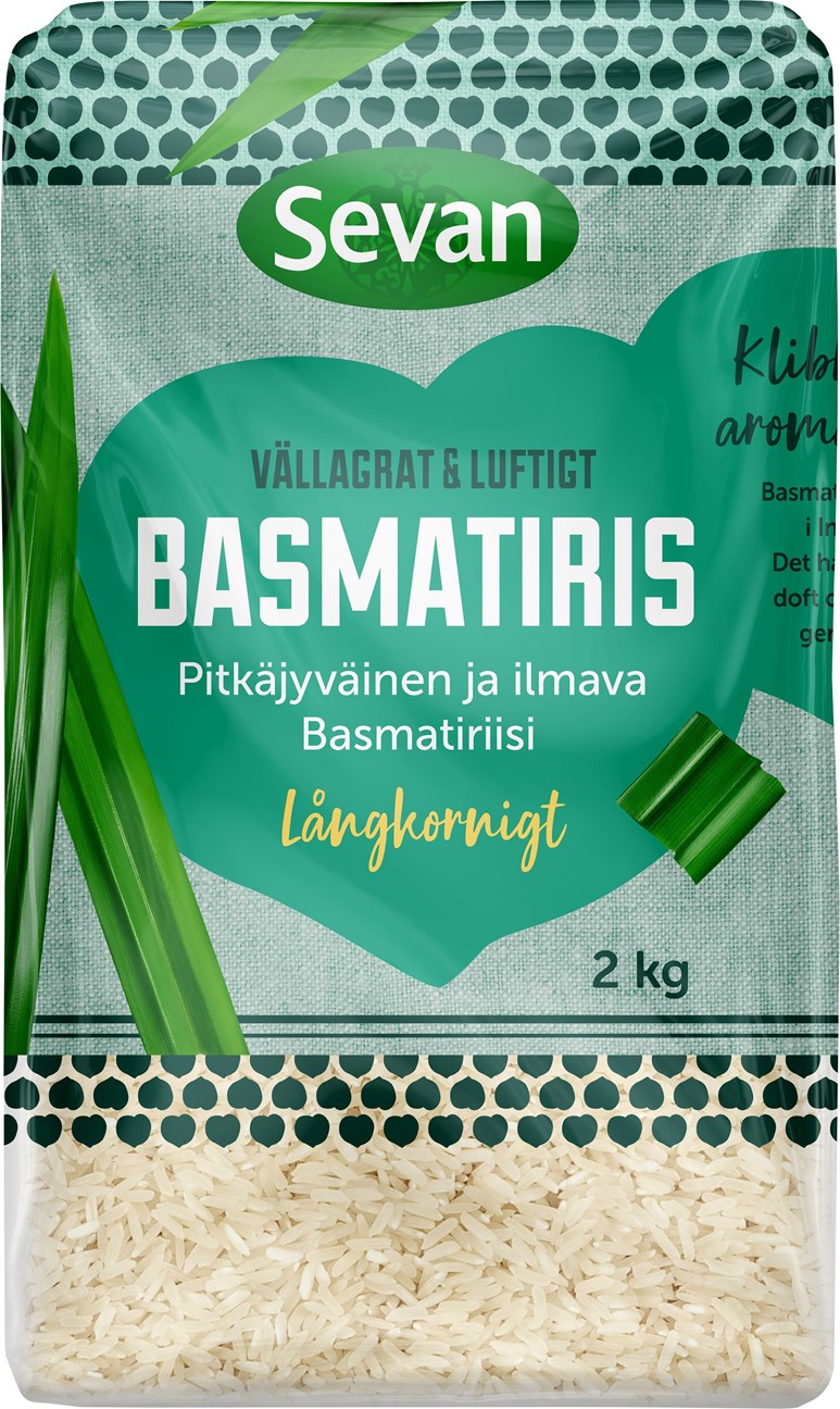 Ett aromatiskt och långkornigt basmatiris som efter kokning ska vara lätt och luftigt med separerade riskorn. Den aromatiska doften är nötaktig och lite smörig. Riset föredras i många av köken i Mellanöstern, Indien och Pakistan. Den persiska tillagningsmetoden av basmati, chelo, brukar lyftas fram som det godaste sättet att avnjuta detta ris. Ett bra basmatiris ska torkas och lagras för att utveckla arom och smak, vårt basmatiris har lagrats i minst två år innan det packas. Vårt basmatiris odlas i Pakistan och innehåller 98 procent hela riskorn.