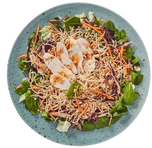 | Ingrediensförteckning: | 29 % kokta nudlar (vatten, VETEMJÖL, rapsolja, surhetsreglerande medel (E 260), salt), 17 % dressing (solrosolja, vatten, socker, sojasås (vatten, SOJABÖNOR, VETE, salt), naturliga aromer (av ingefära), limekoncentrat, vinäger, chilipasta (chilipeppar, salt, vinäger, vatten, citrusfiber), koriander, lök, lökextrakt, chilipeppar, stabiliseringsmedel (E 415)), 14 % stekt kycklingbröstfilé (kycklingbröstfilé, salt, stabiliseringsmedel (E 450, E 451), druvsocker, surhetsreglerande medel (E 262, E 327), antioxidationsmedel (E 301), arom), rödkål, morot, spenat, salladskål, purjolök, 3 % CASHEWNÖTTER. Kan innehålla spår av andra NÖTTER och JORDNÖTTER. |