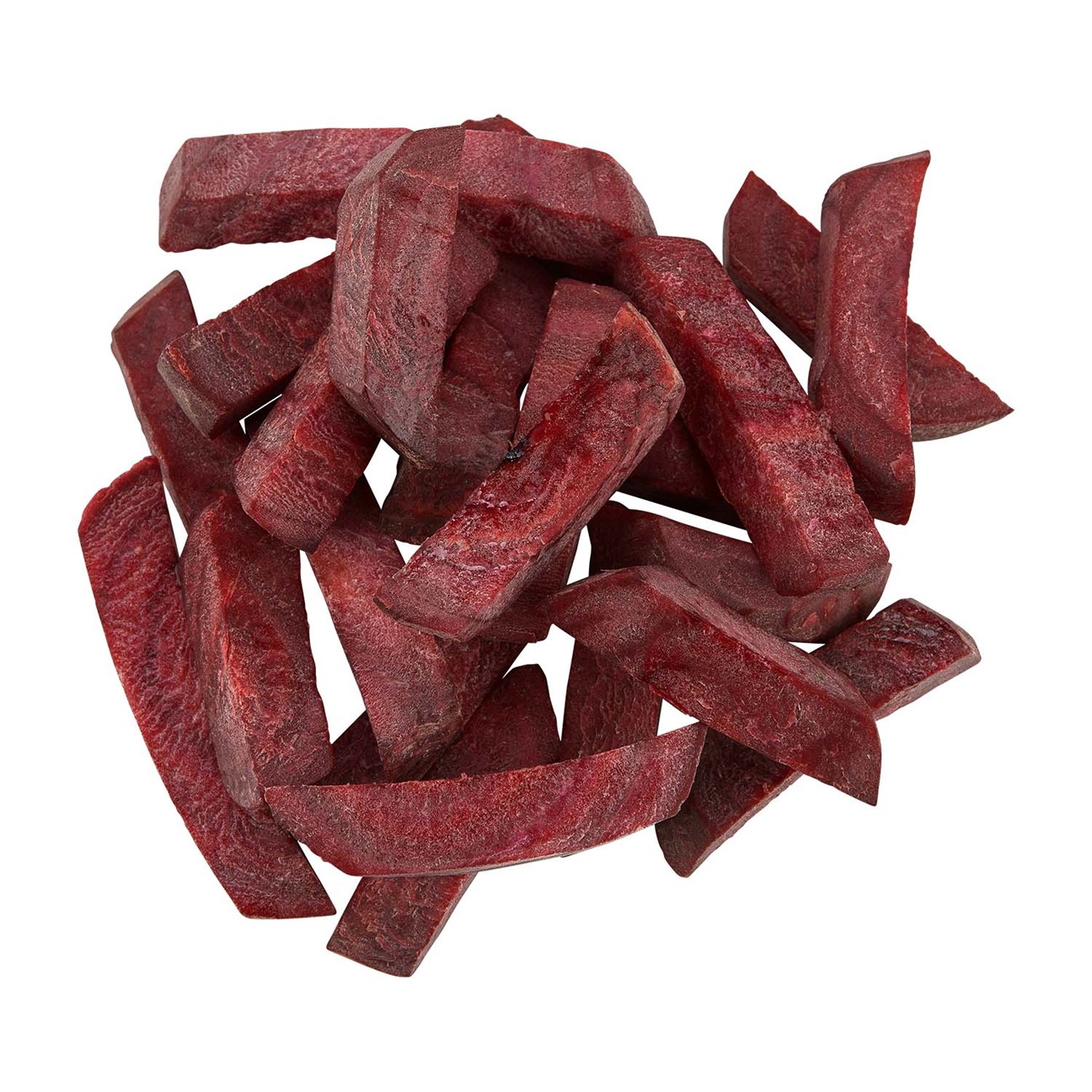 Rödbeta i stavar, snitt: 15mm. Utmärkta till ugnsrostning tillsammans med andra rotfrukter eller för sig själv. Förenklar matlagningen och spar tid i köket. Vakuumförpackad.