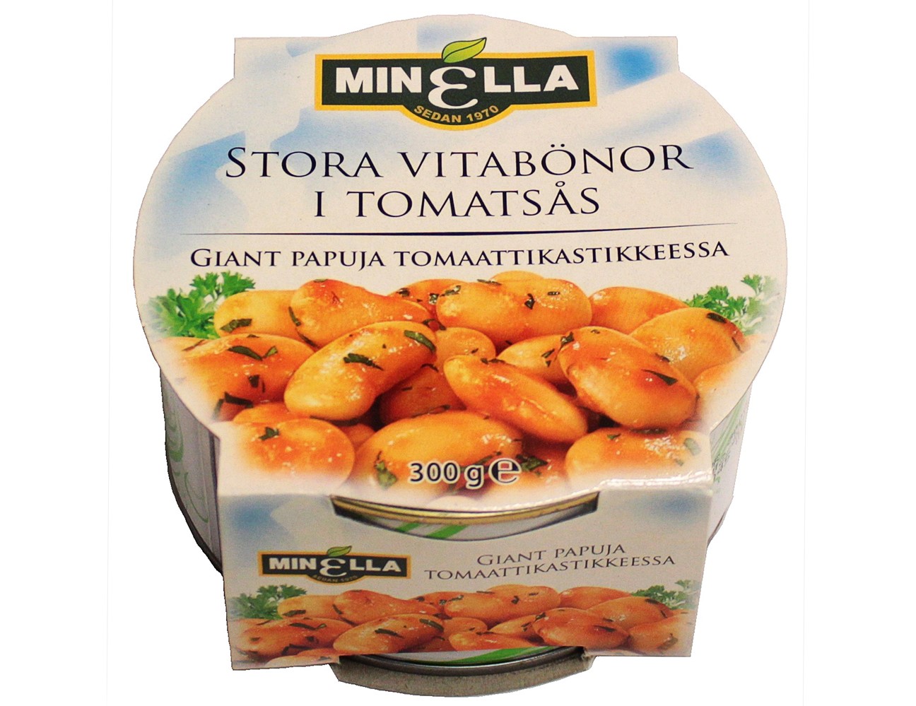 Beskrivning Artikelkategori: Stora vitabönor i tomatsås Produktnamn: Stora vitabönor i tomatsås Varumärke: Minella Förpackningsstorlek: 300g