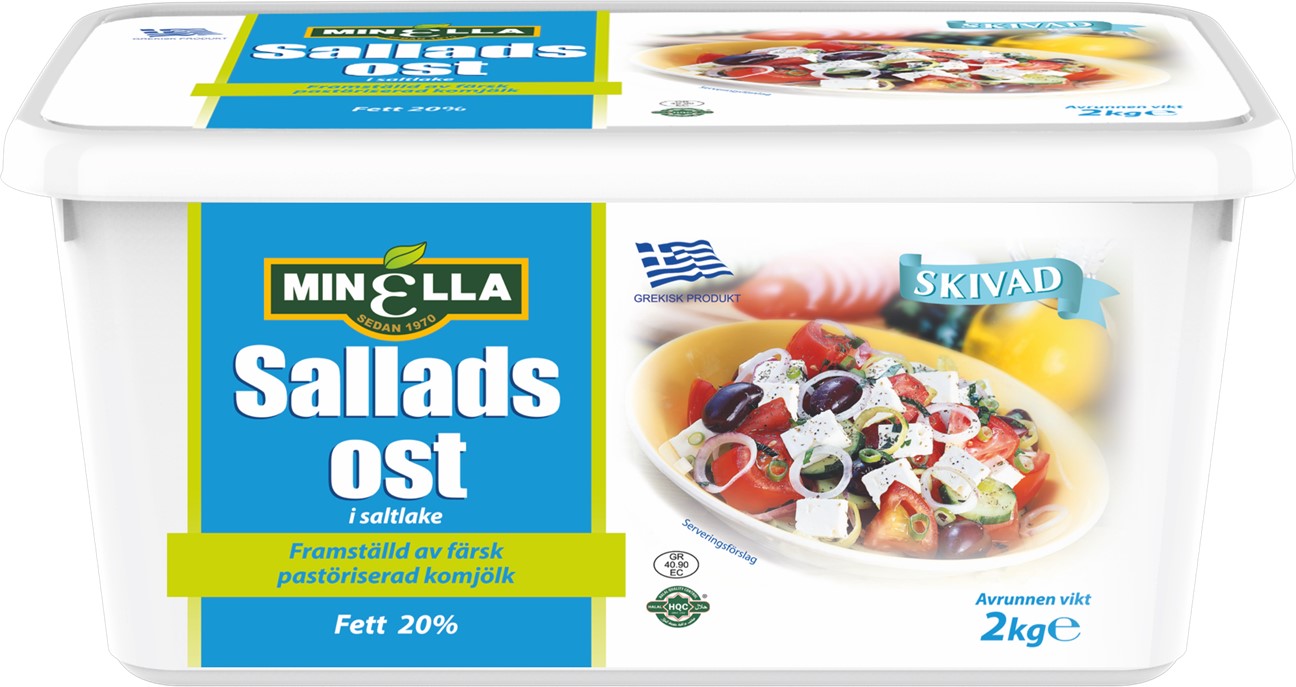 Beskrivning Artikelkategori: Salladsost Skivad i saltlake Produktnamn: Salladsost Skivad i saltlake Varumärke: Minella Förpackningsstorlek: 2kg