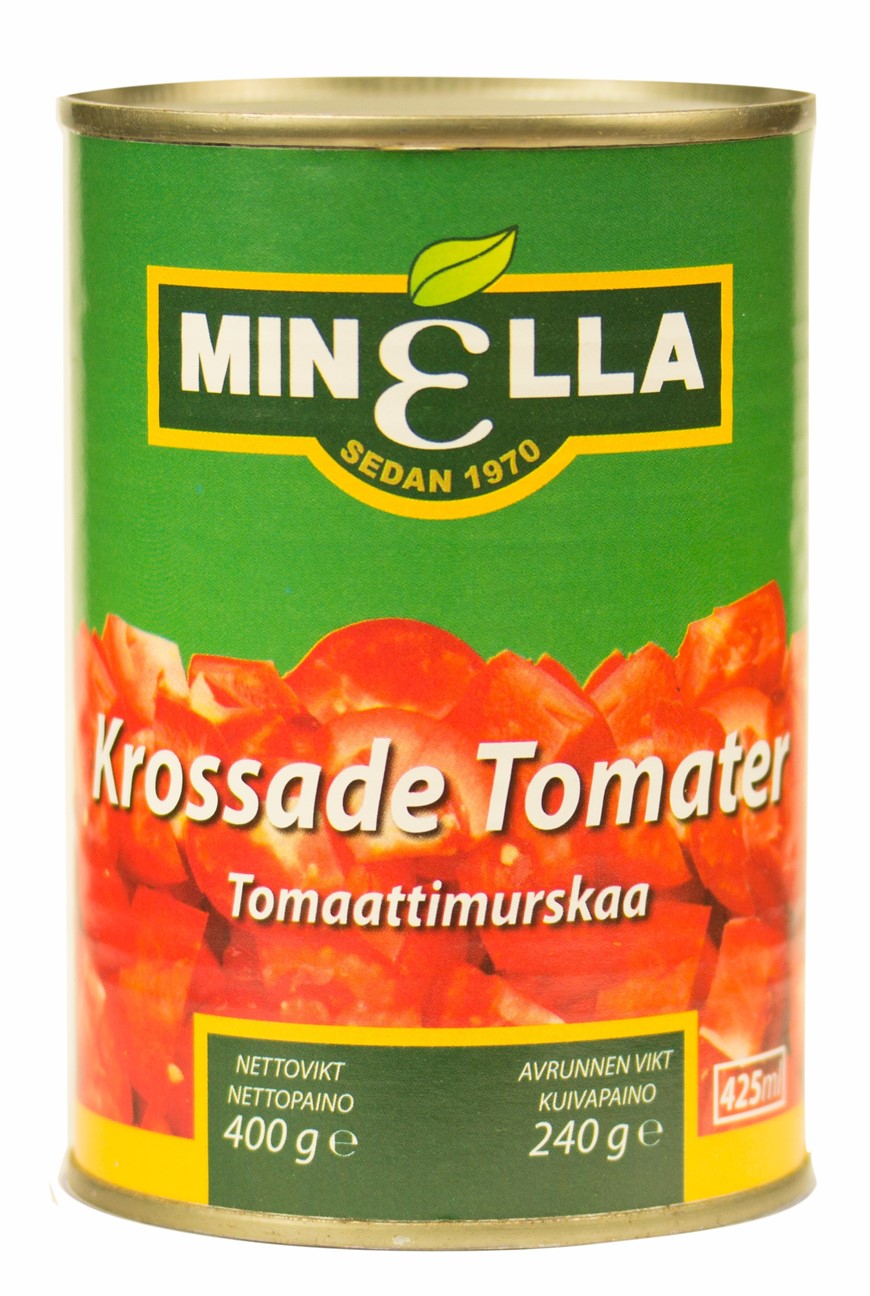 Beskrivning Artikelkategori: Krossade tomater Produktnamn: Krossade tomater Varumärke: Minella Förpackningsstorlek: 400g